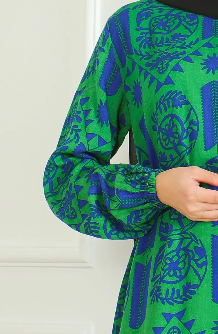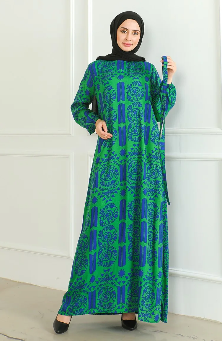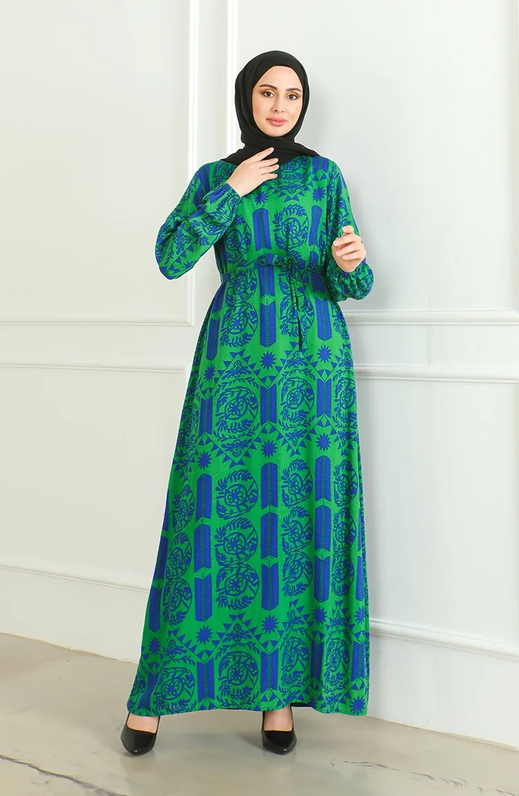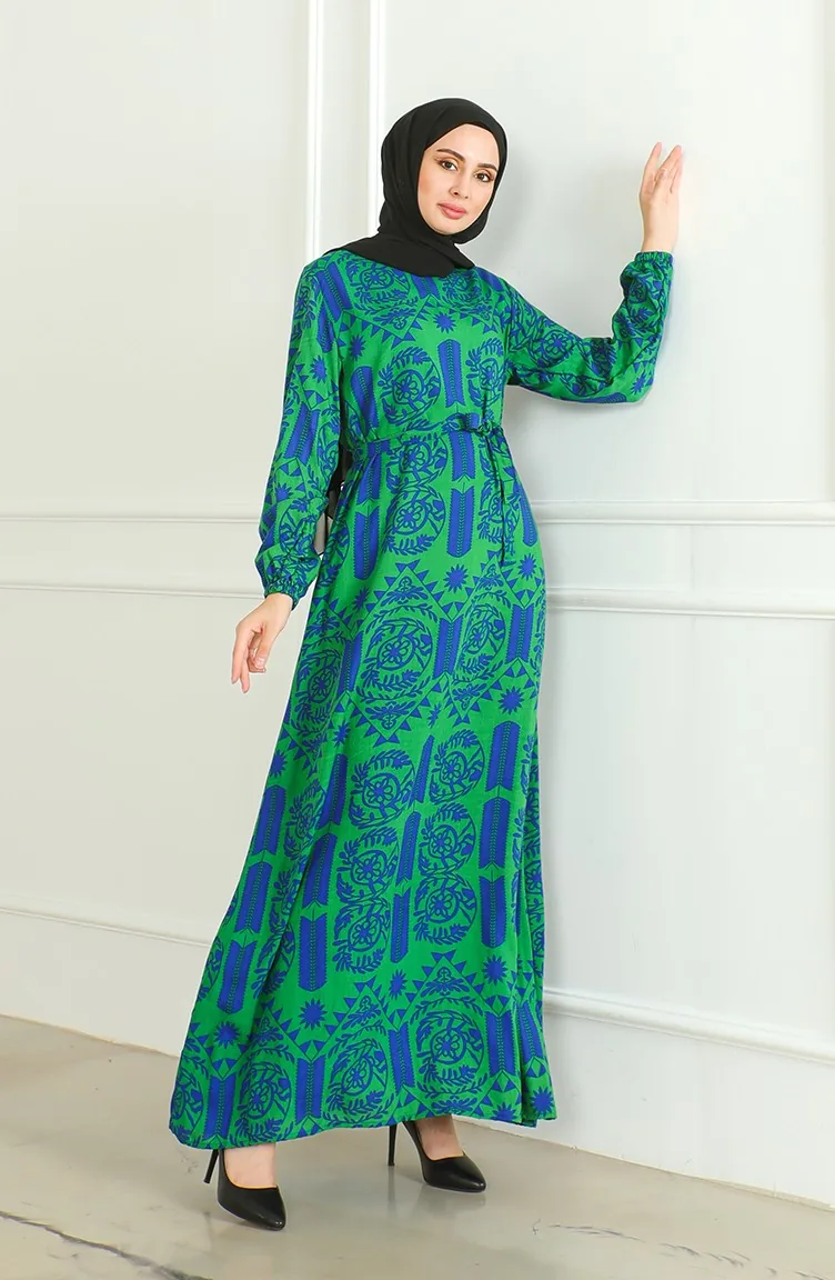Viscose-jurk Met Patroon En Riem 0499-01 Groen 0499-01