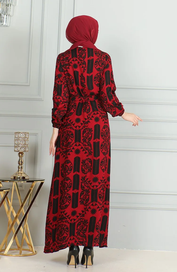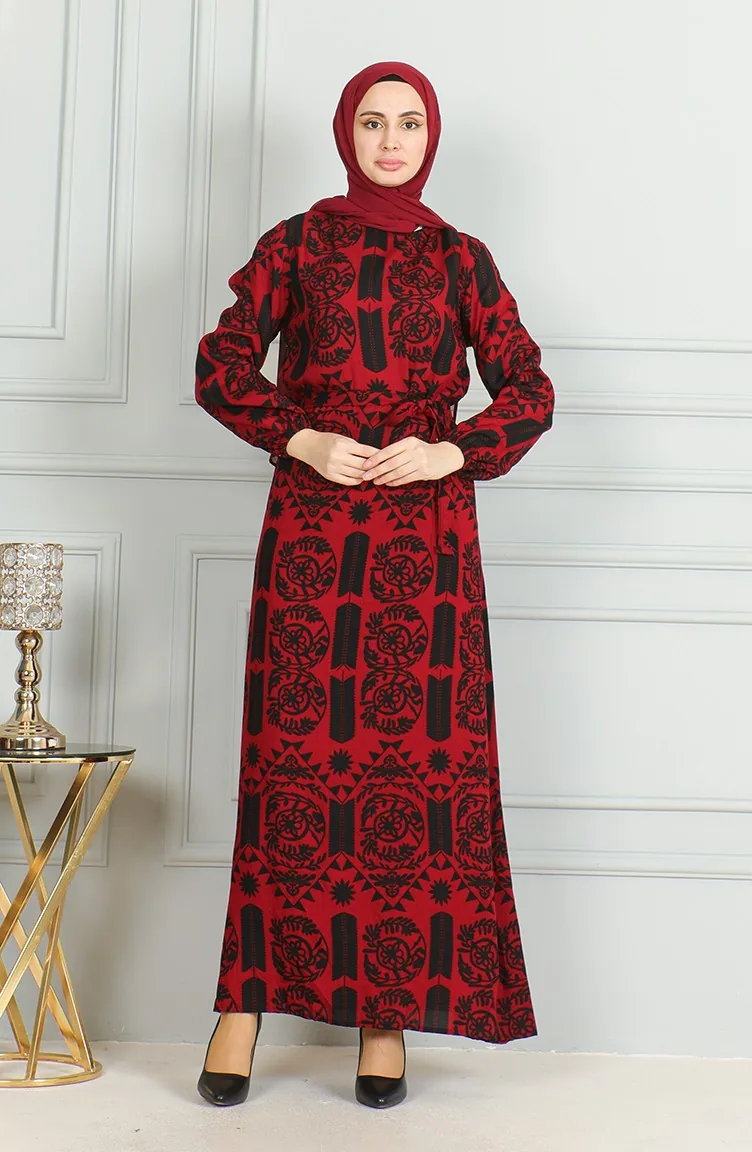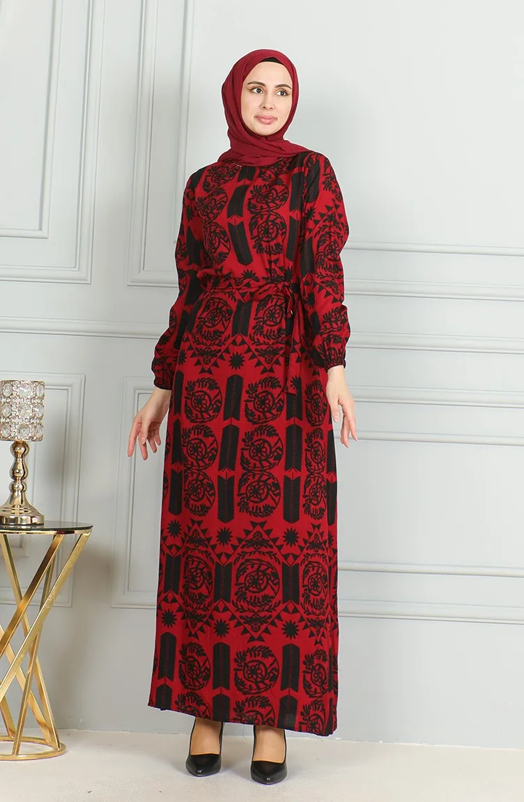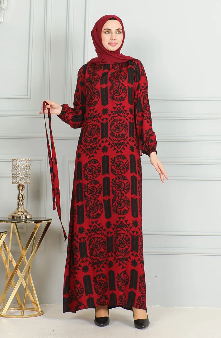 Viscose-jurk Met Patroon En Riem 0499-05 Rood 0499-05