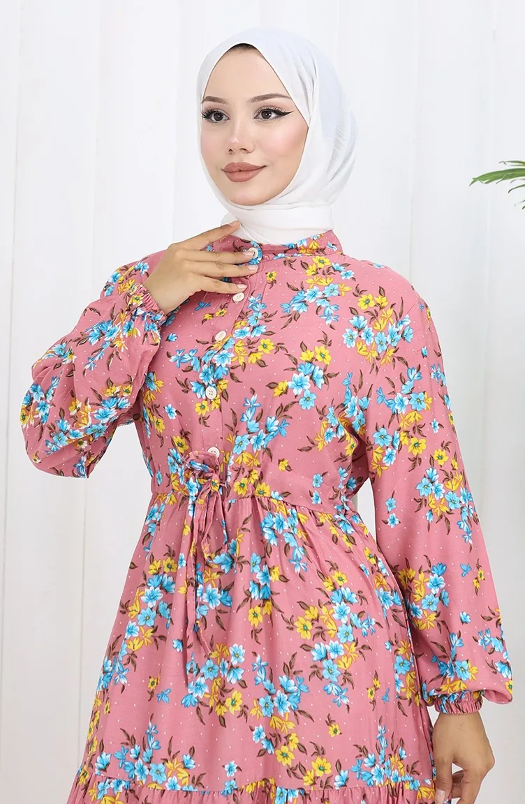 Viscose Jurk Met Tailleband 2132-03 Poeder 2132-03