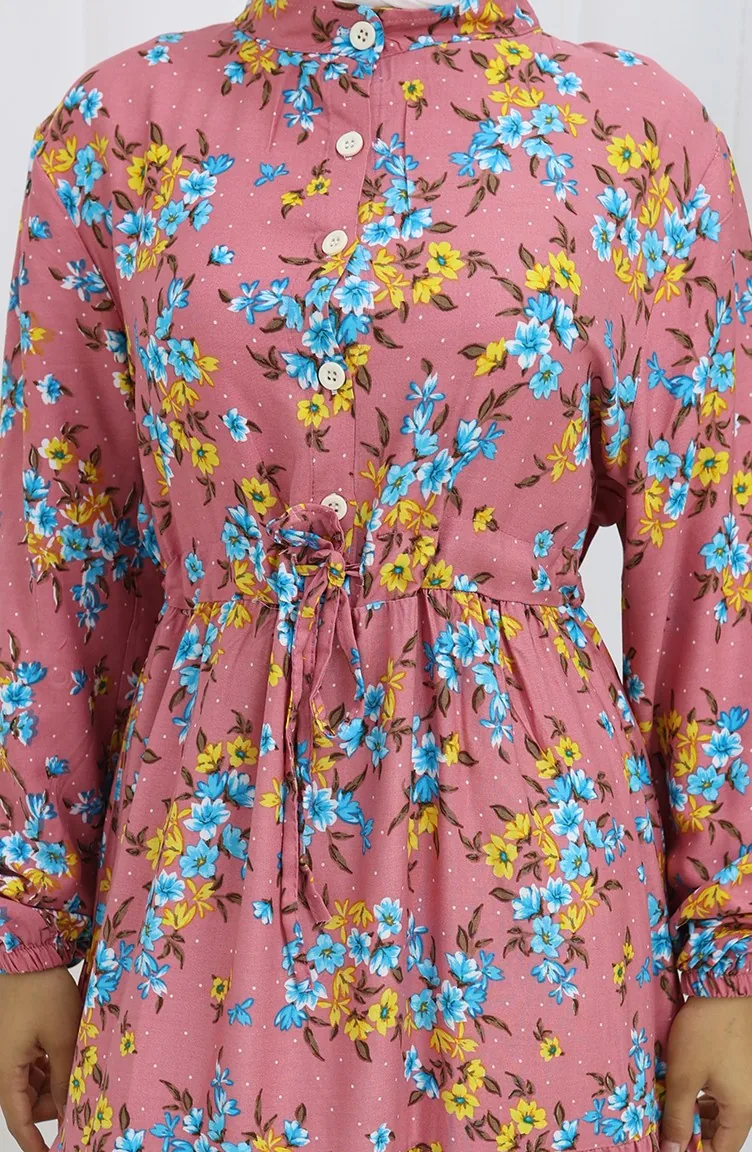 Viscose is a type of synthetic fabric and is convenient to use. Designed with patterned fabric. Buttons have been used to make it easy to use. It's made of elastic sleeves. Tippet collar is prefered. Suitable for 4 seasons. Plus size option available.