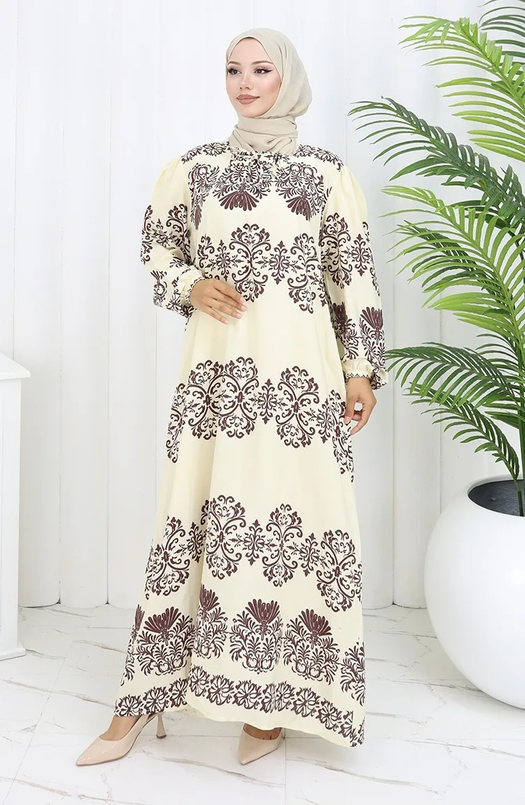 Viscose is a type of synthetic fabric and is convenient to use. Designed with patterned fabric. Long sleeve product. Designed for summer use. Woman. Plus size option available.