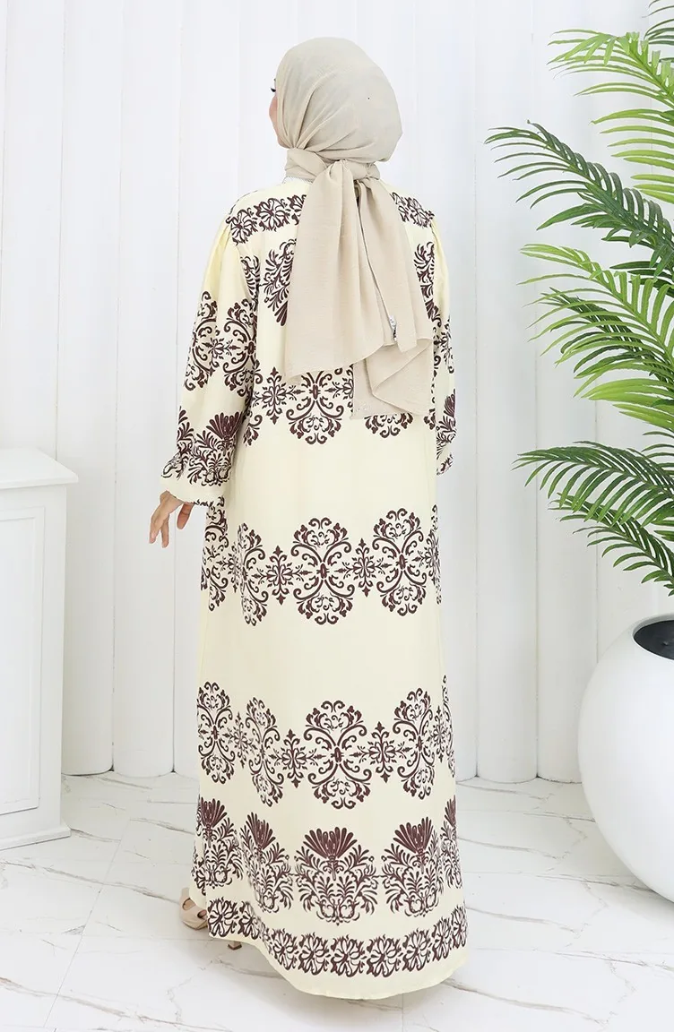 Viscose Kraagjurk Met Watervaste Rok 984585G-02 Wit Bruin 984585G-02