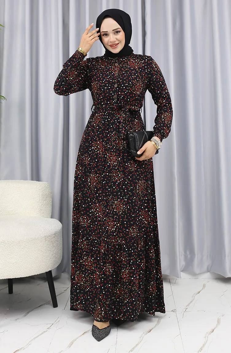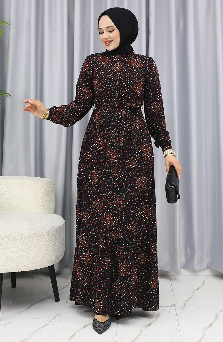 Black color is used. Viscose is a type of synthetic fabric and is convenient to use. Designed with patterned fabric. Buttons have been used to make it easy to use. Tippet collar is prefered. Suitable for 4 seasons. The size worn by the model, is the one on the image.