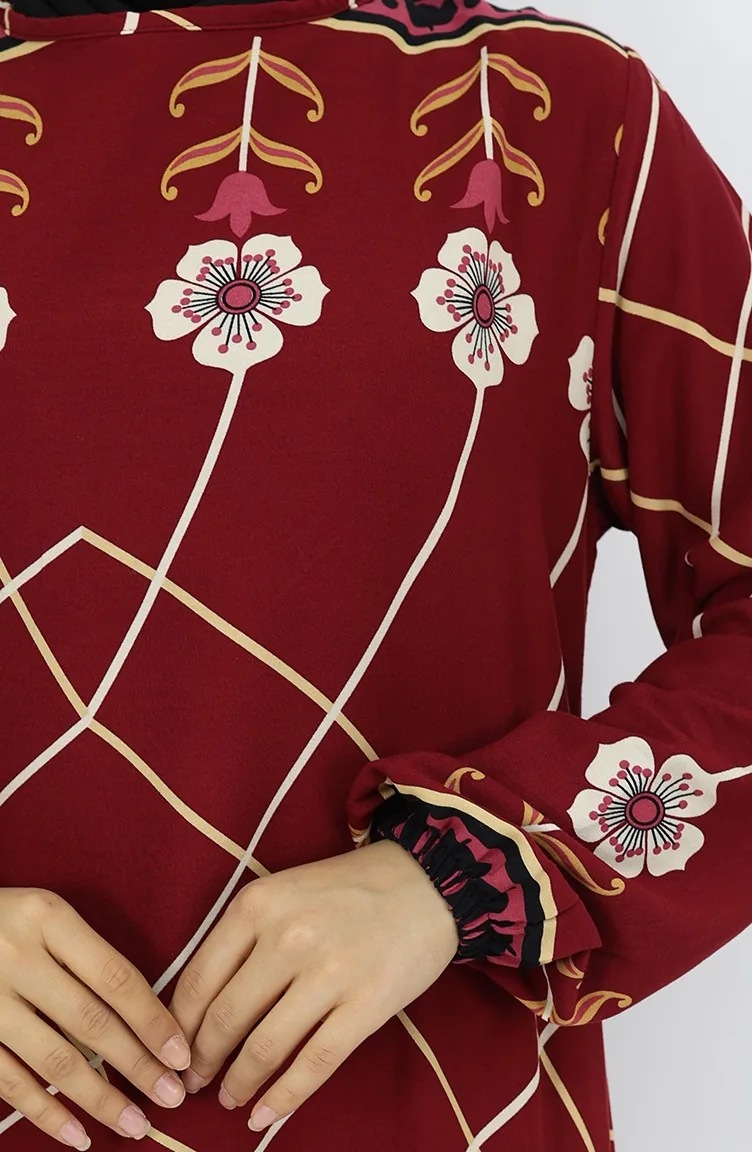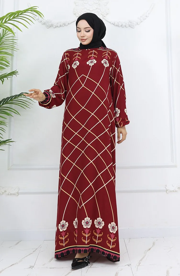 Viscose Stof Elastische Mouw Jurk 0030-04 Claret Red 0030-04