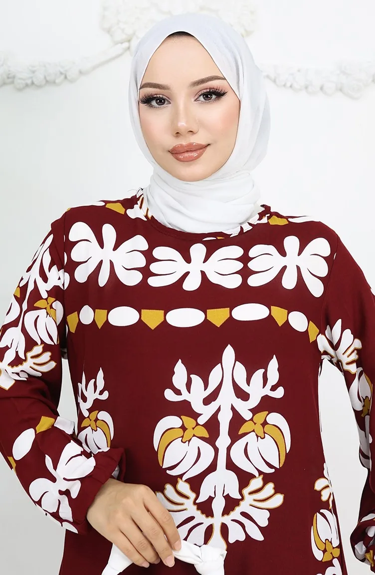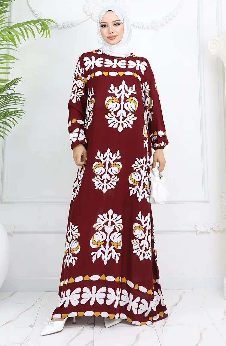 Viscose Stof Elastische Mouw Patroon Jurk 0046-02 Claret Red 0046-02
