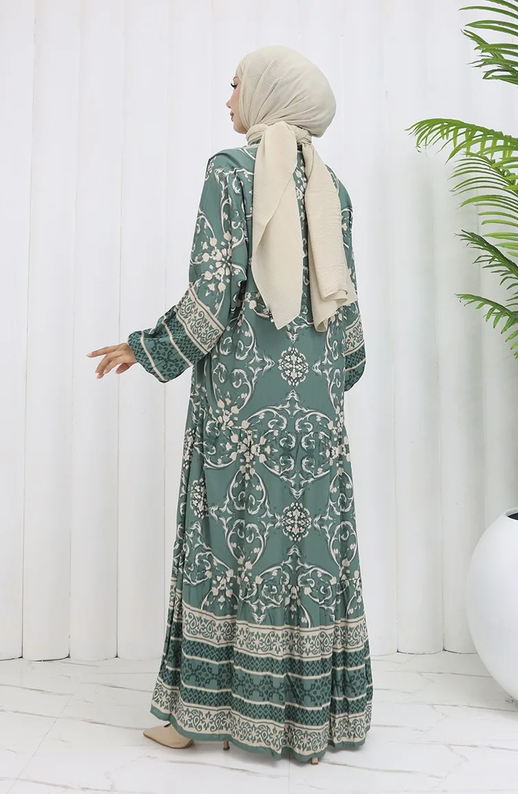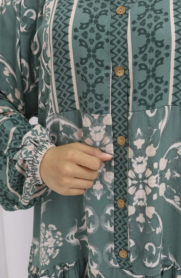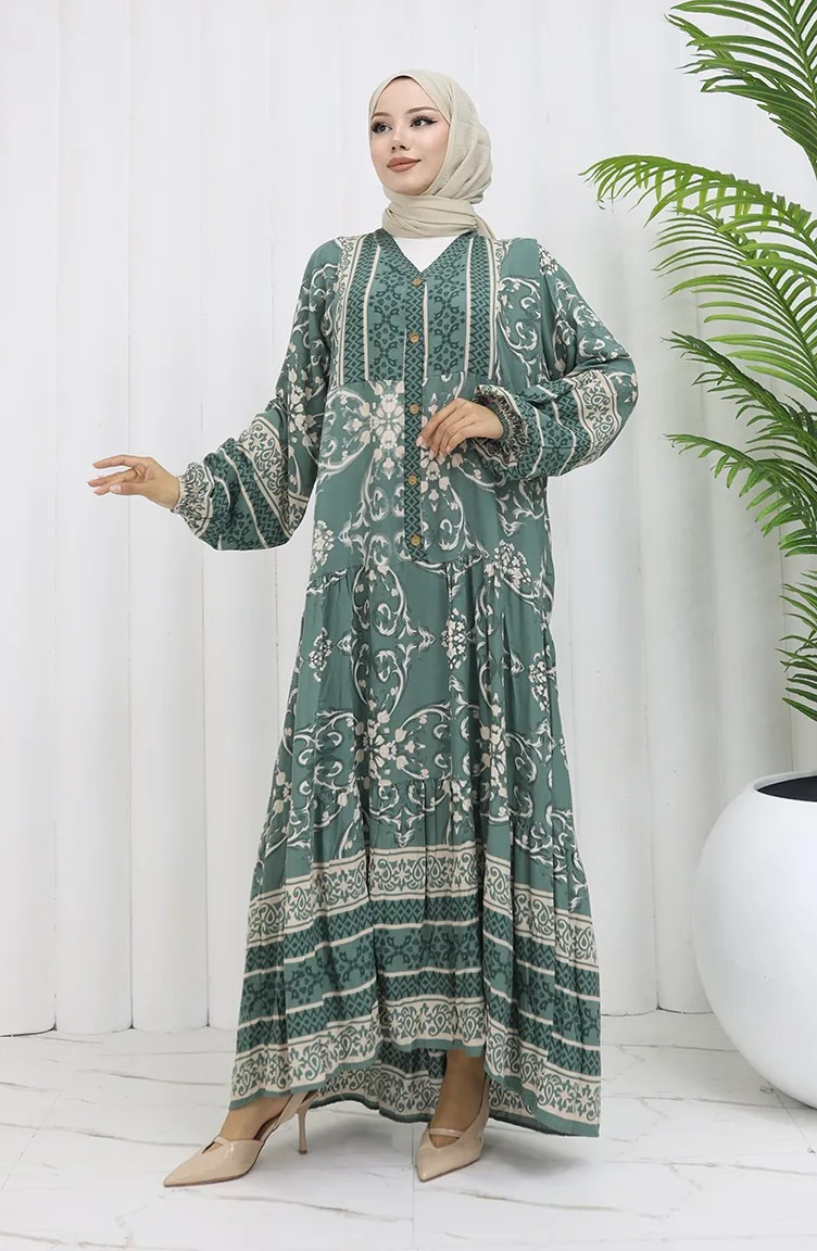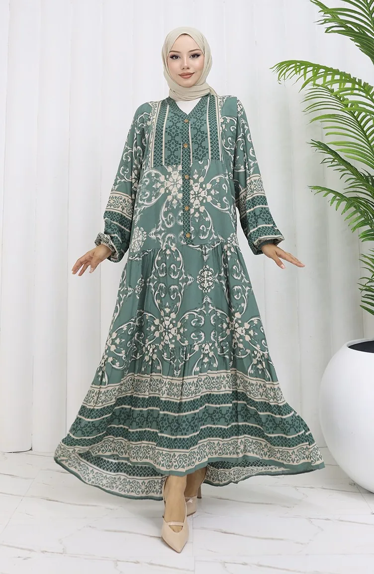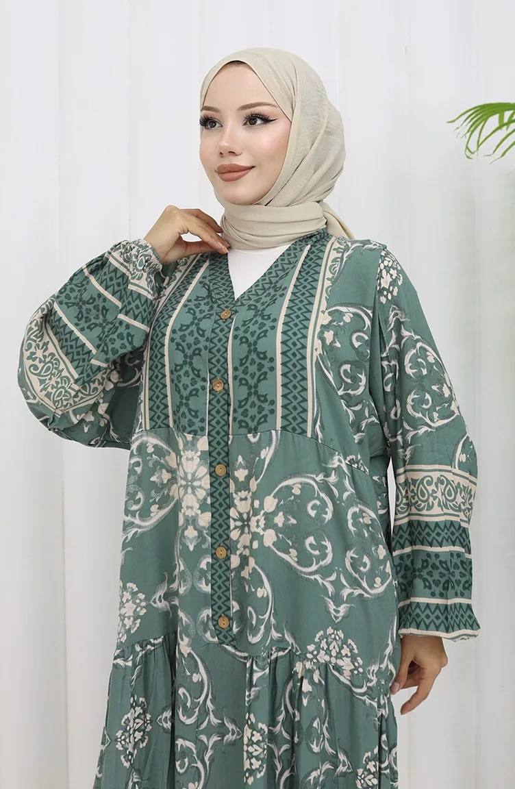 Viscose Stof Half Geknoopt Patroon Jurk 0052-04 Amandelgroen 0052-04