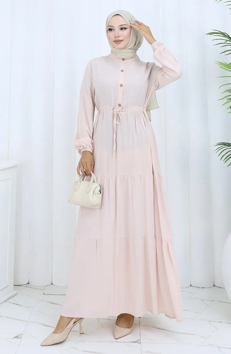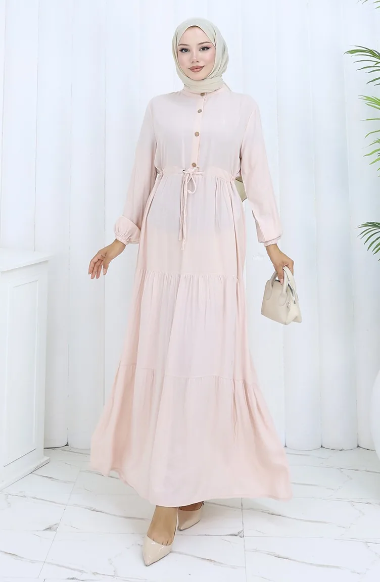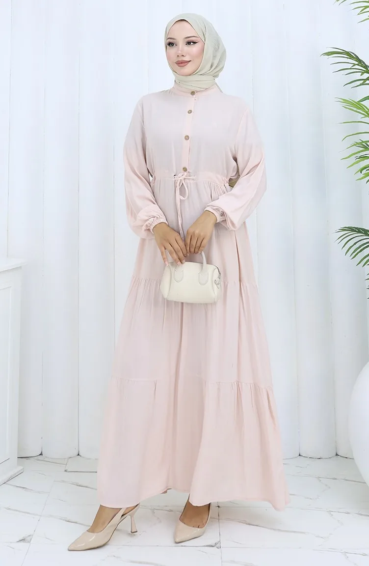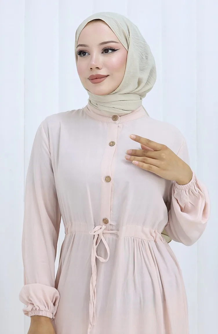 Viscose Stof Halfgeknoopte Jurk 0085-12 Poeder 0085-12