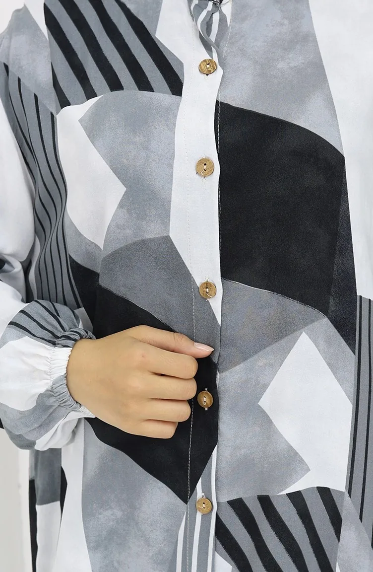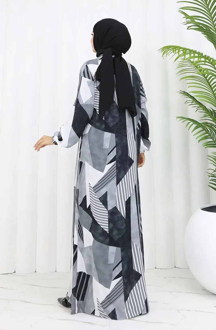 Viscose Stof Jurk Met Knopen 0051-04 Grijs Zwart 0051-04