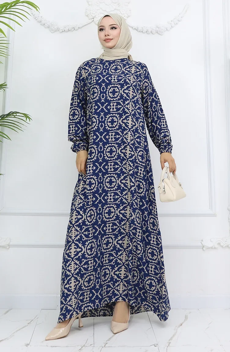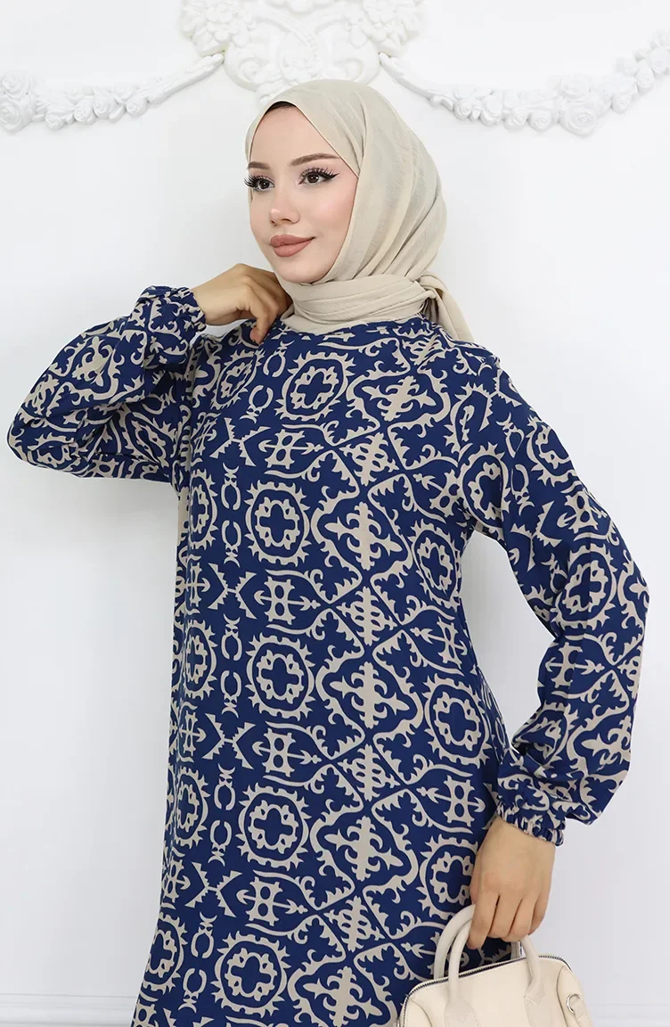 Viscose Stof Patroon Jurk 0036-03 Marineblauw 0036-03