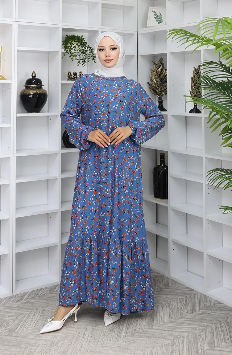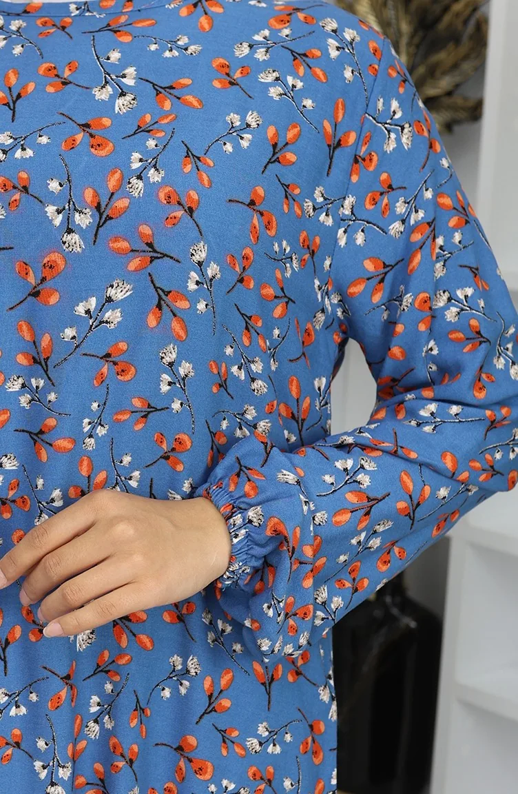 Indigo color is used. Viscose is a type of synthetic fabric and is convenient to use. Designed with patterned fabric. The product is used unlined. It's made of elastic sleeves. The Zero collar is preferred for all types of clothing. Suitable for 4 seasons. Rahat. Plus size option available.