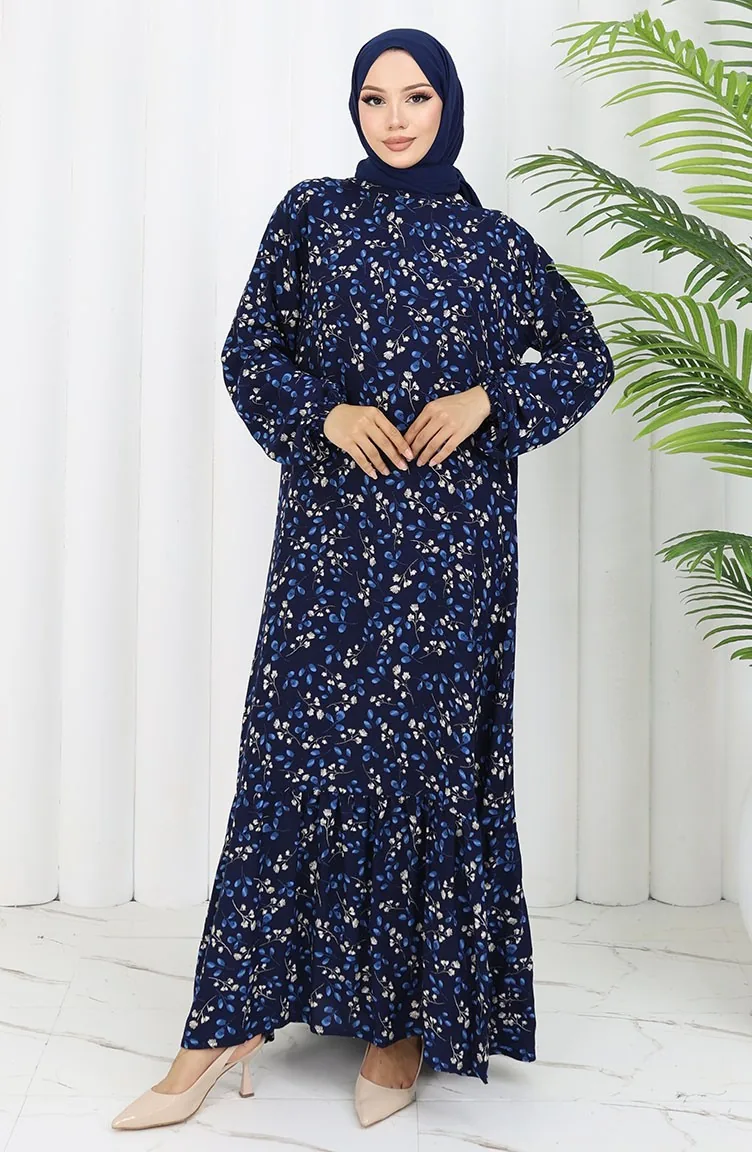 Viscose Stof Patroon Jurk 0065-02 Marineblauw 0065-02