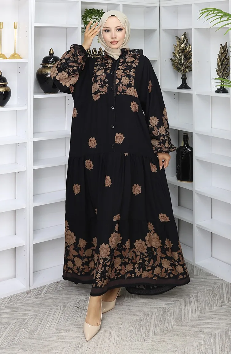 Viscose Stof Patroon Jurk 2045-03 Zwart 2045-03