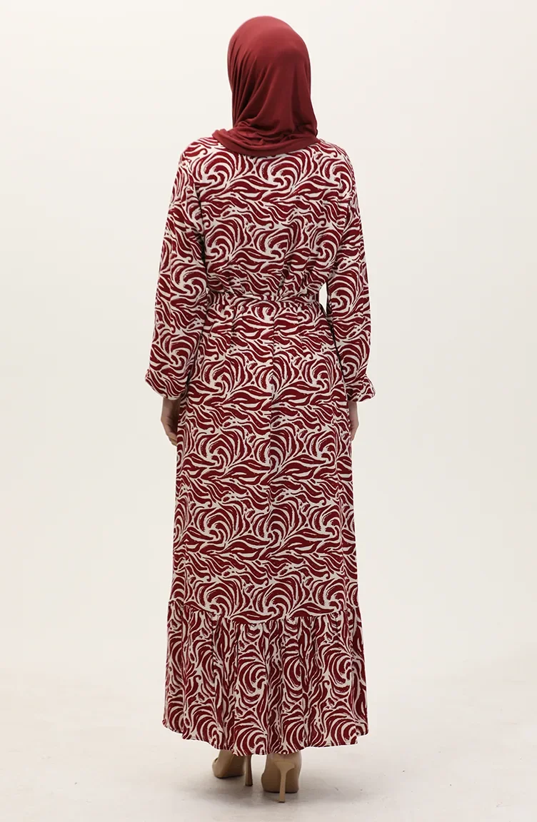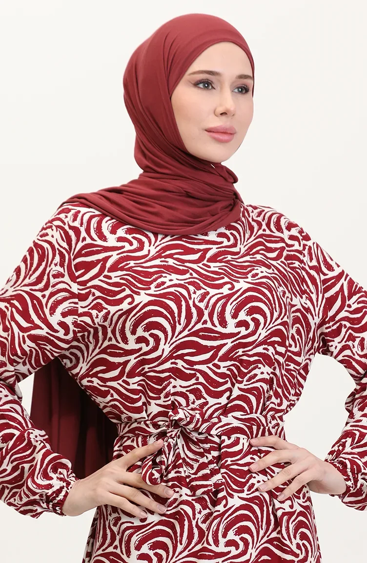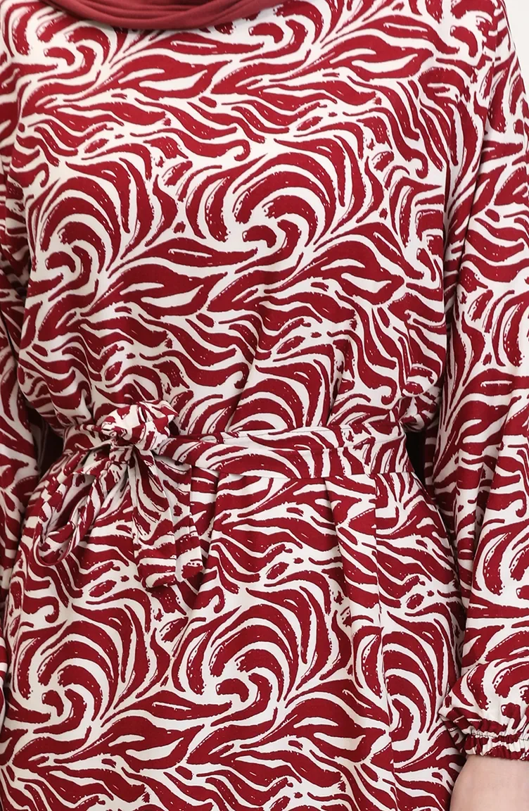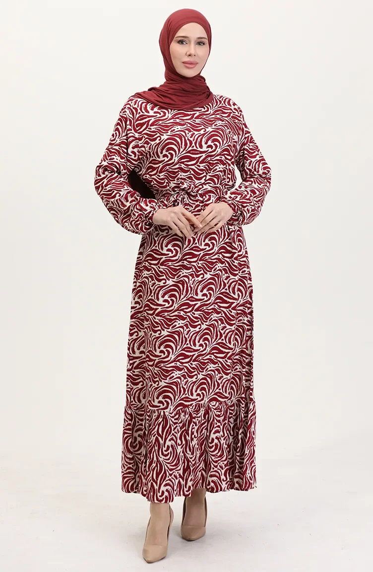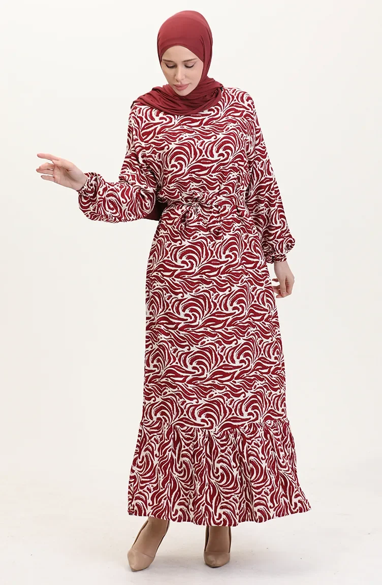 Viscose Stof Rok Met Ruche Riem Jurk 0038-02 Claret Red 0038-02