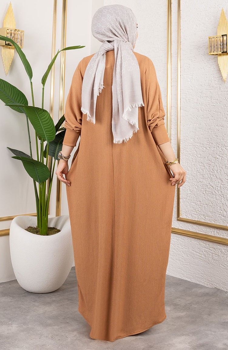 Vleermuismouwen Crêpejurk 2000-05 Lichtbruin 2000-05