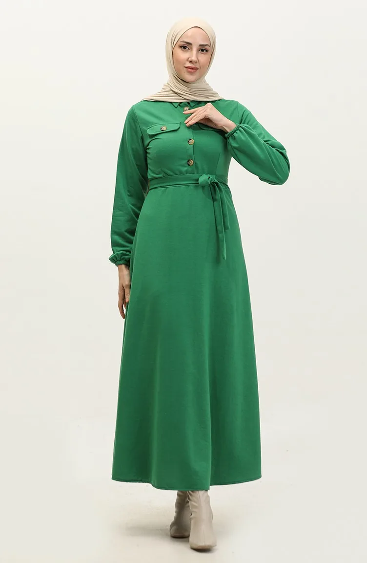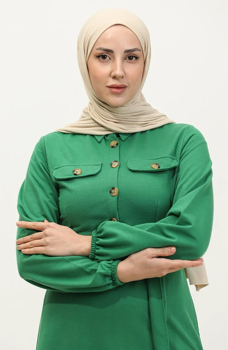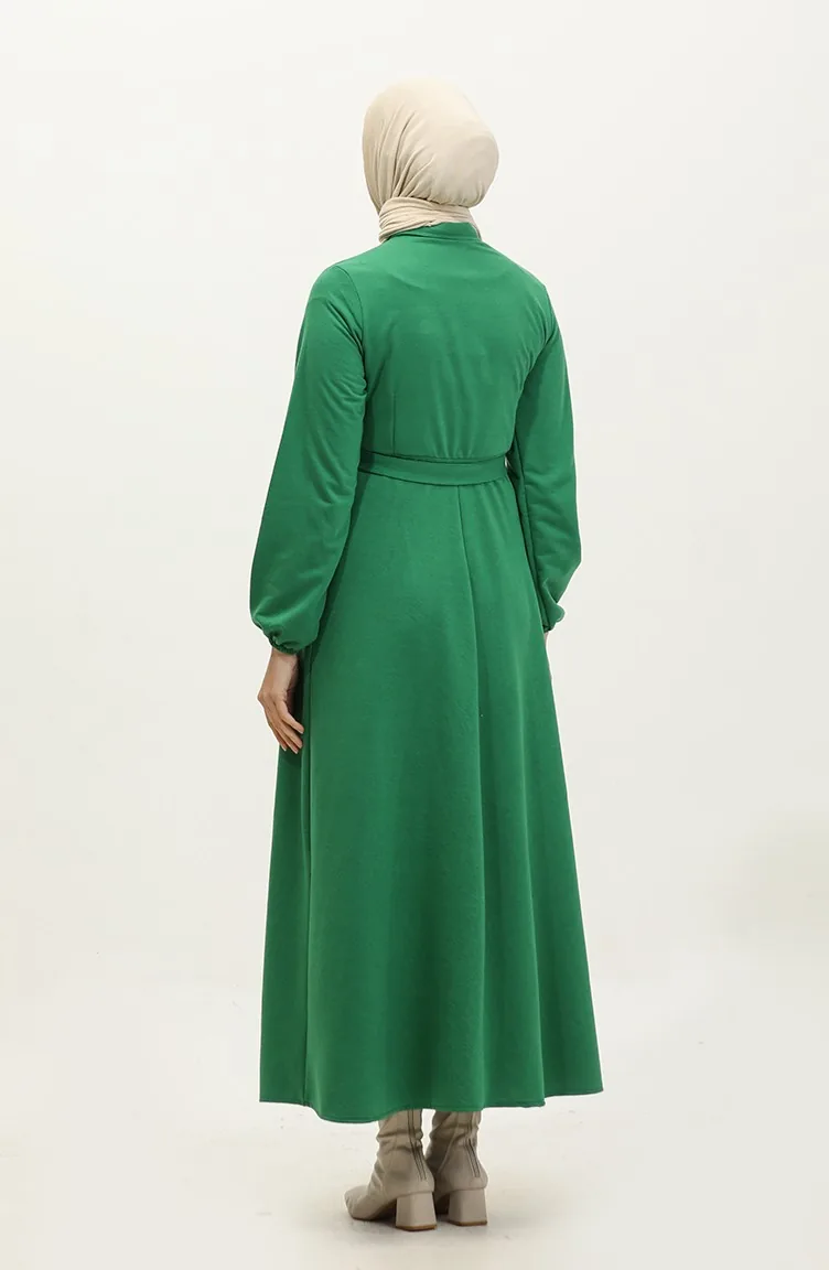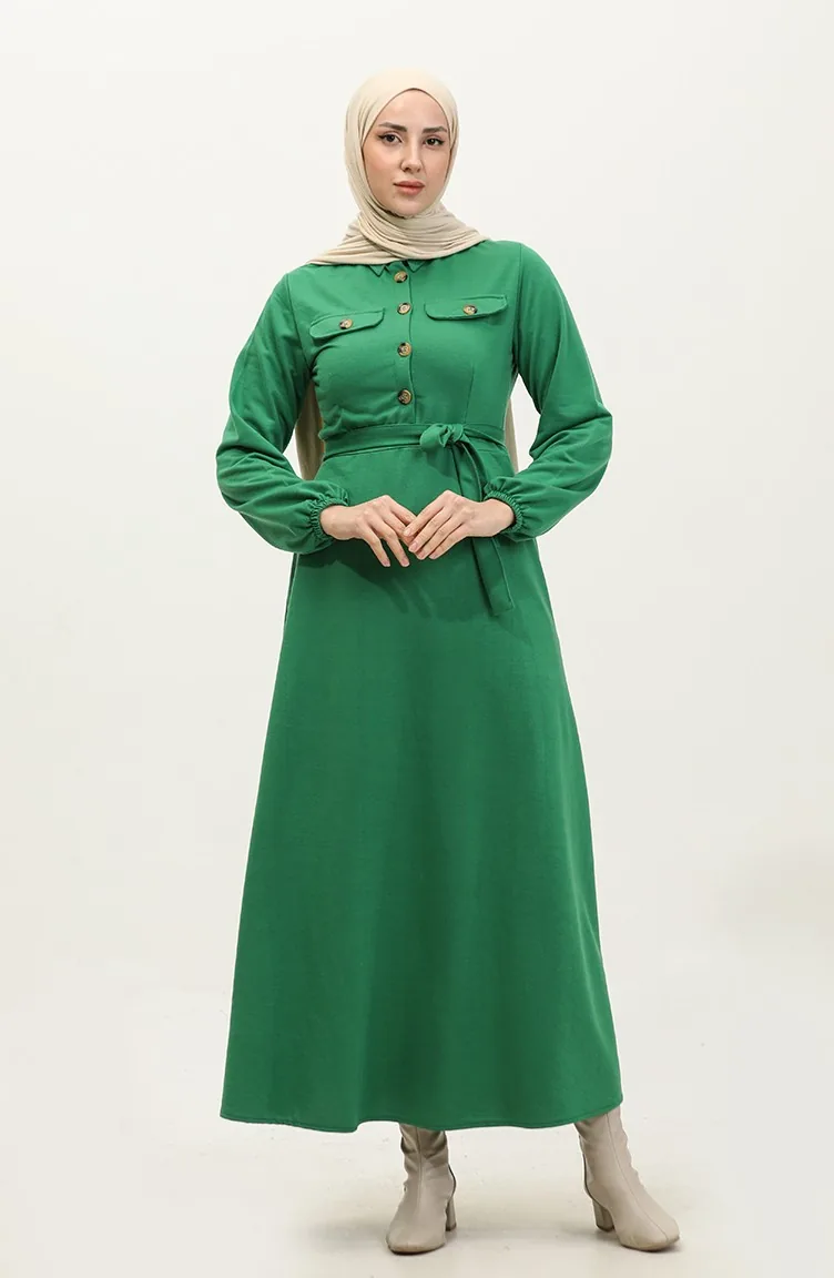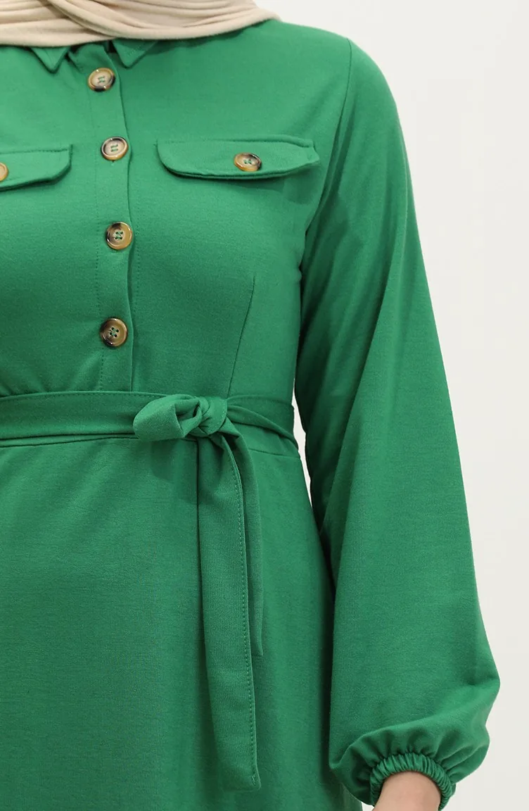 Zakgedetailleerde Cupped Jurk 0331-02 Smaragdgroen 0331-02