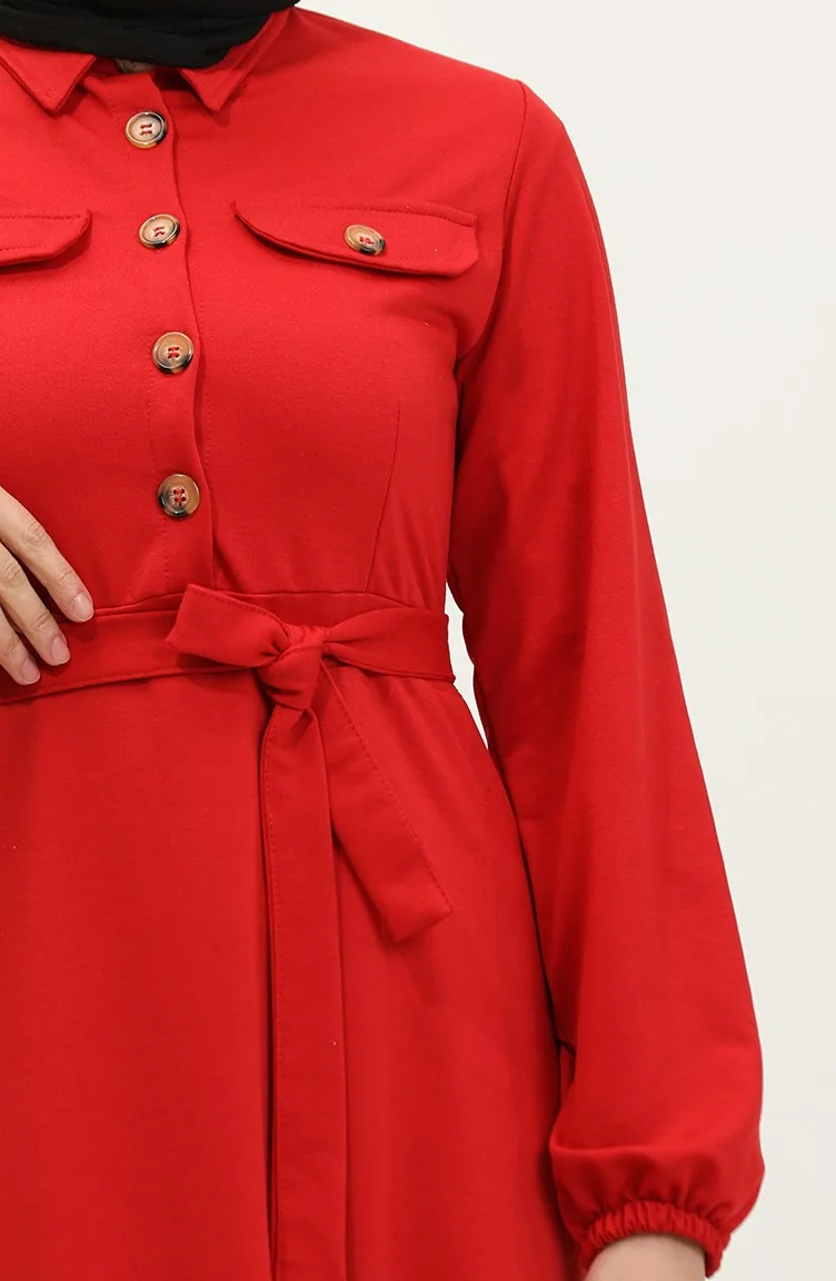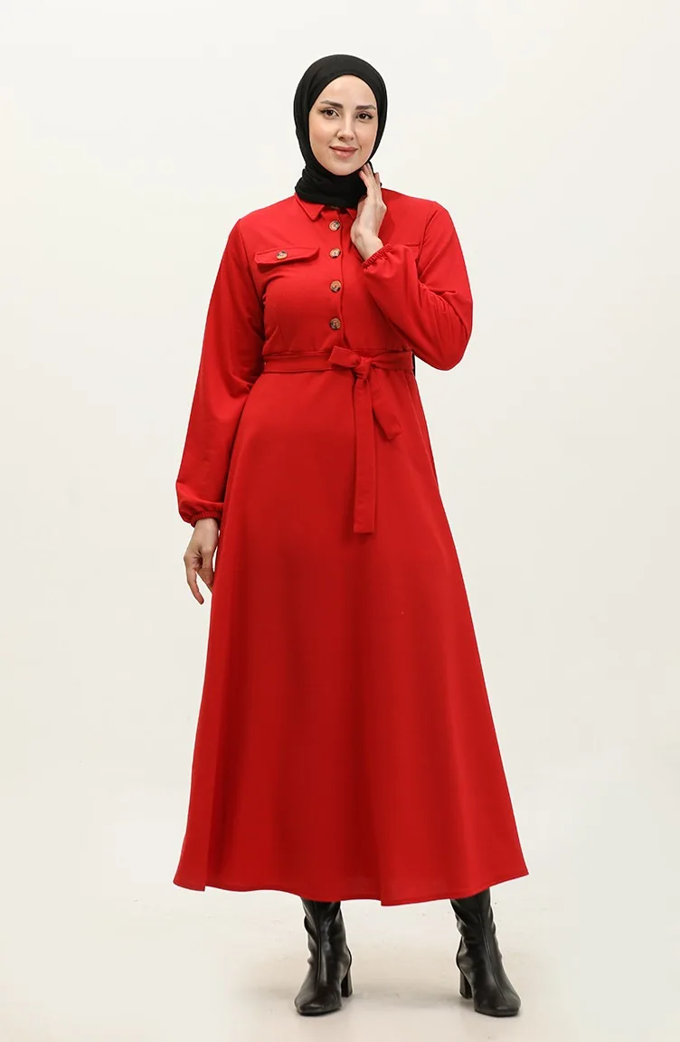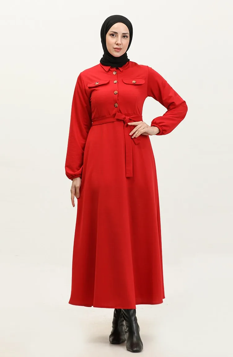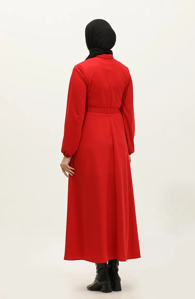 Zakgedetailleerde Cupped Jurk 0331-04 Rood 0331-04