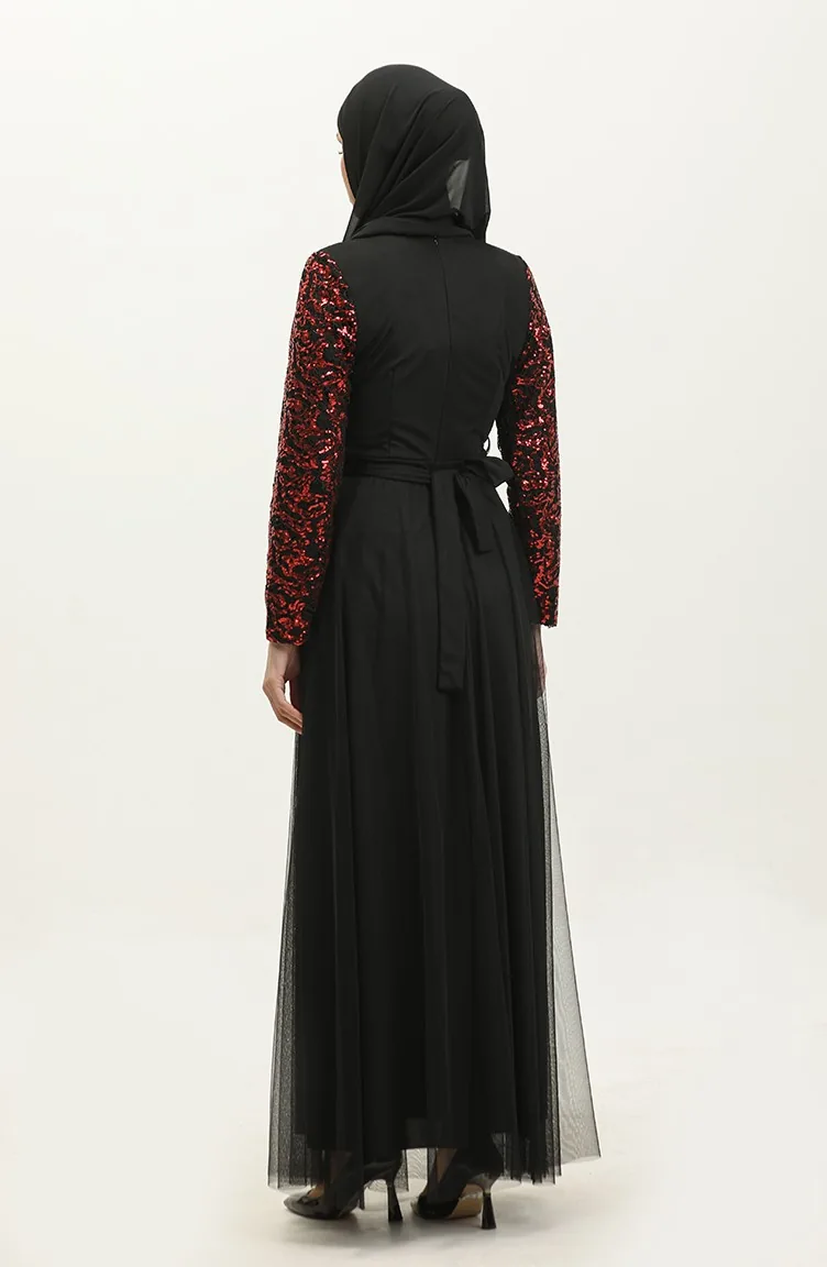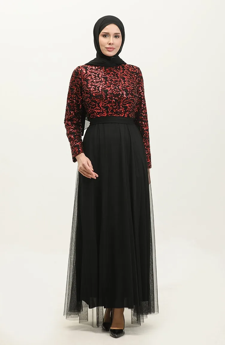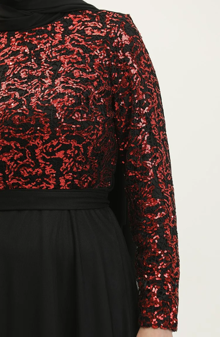 Avondjurk Met Kanten Riem 5353A-18 Zwart Rood 5353A-18
