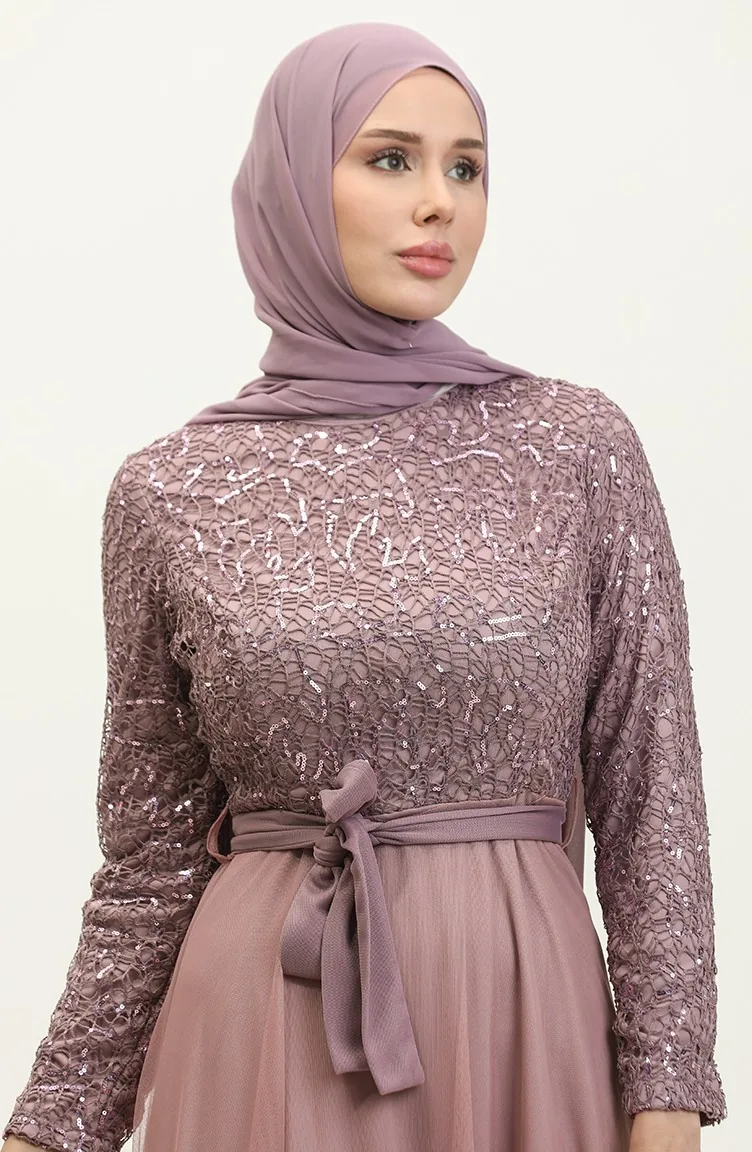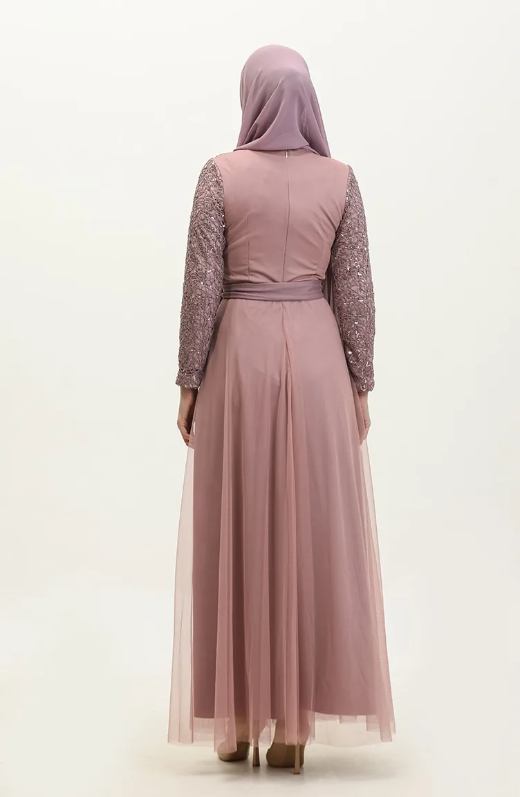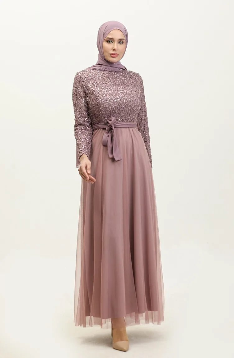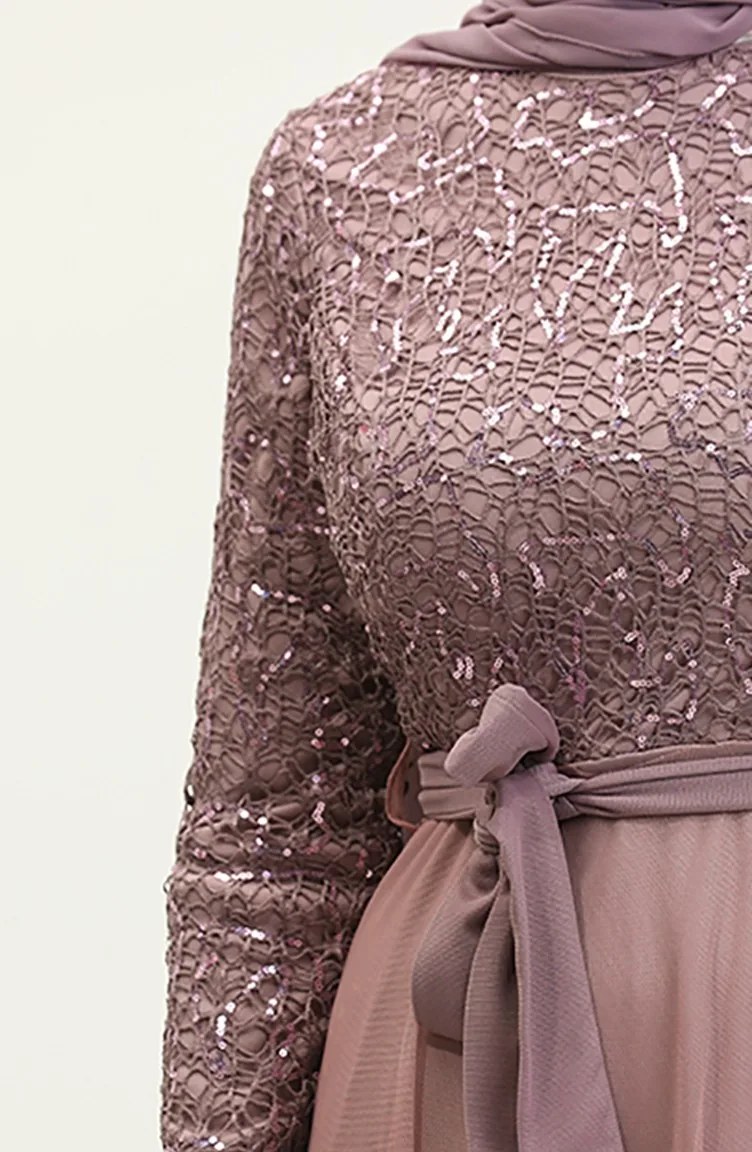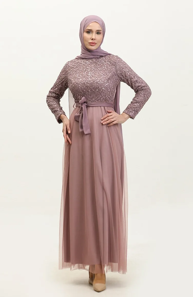 Avondjurk Met Kanten Riem 5353A-21 Lila Paars 5353A-21