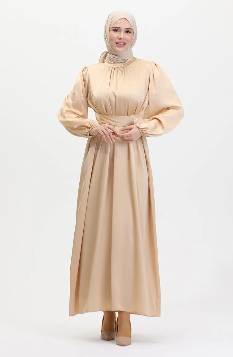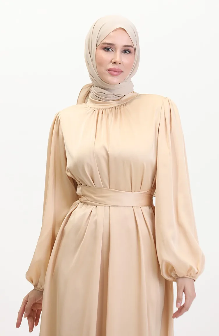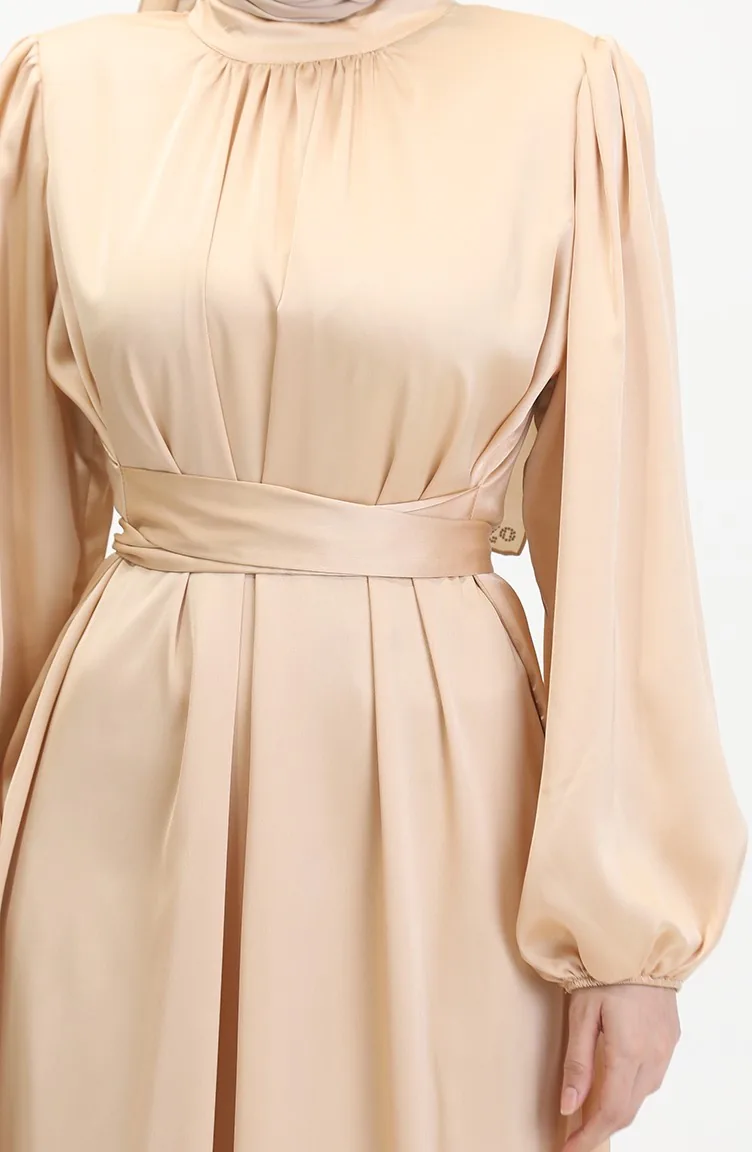 Avondjurk Van Verzameld Satijn 6372-06 Beige 6372-06