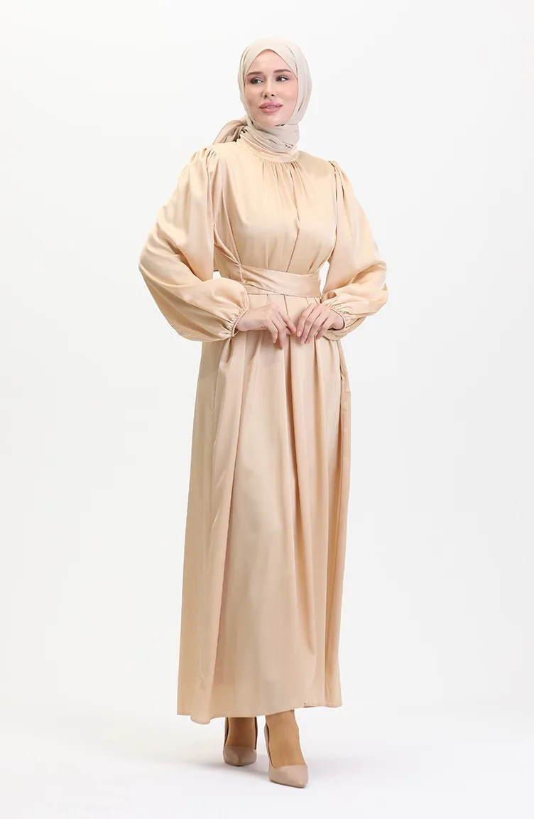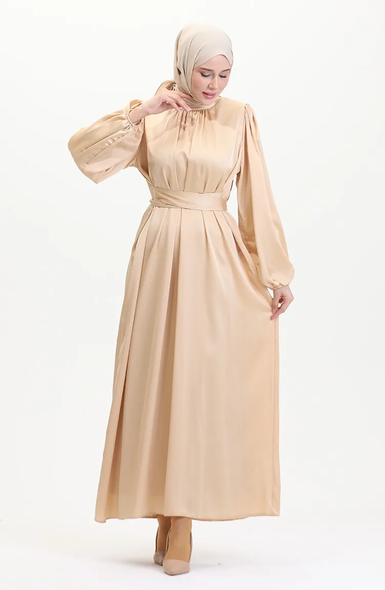 The satin fabric has an elegant texture, pleasant and precise in terms of appearance compared to other types. It has a plain appearance. The product is used unlined. It's made of elastic sleeves. The Zero collar is preferred for all types of clothing. Suitable for 4 seasons. Plus size option available.