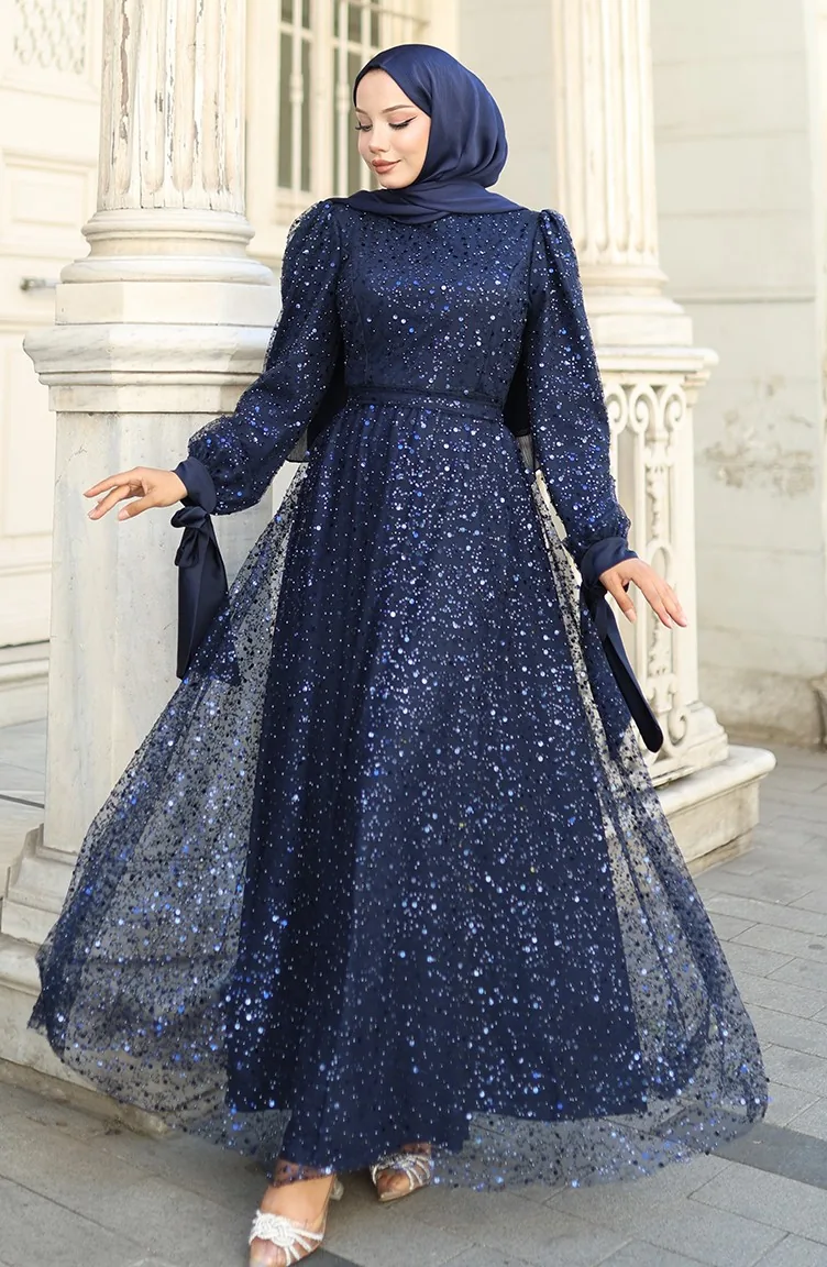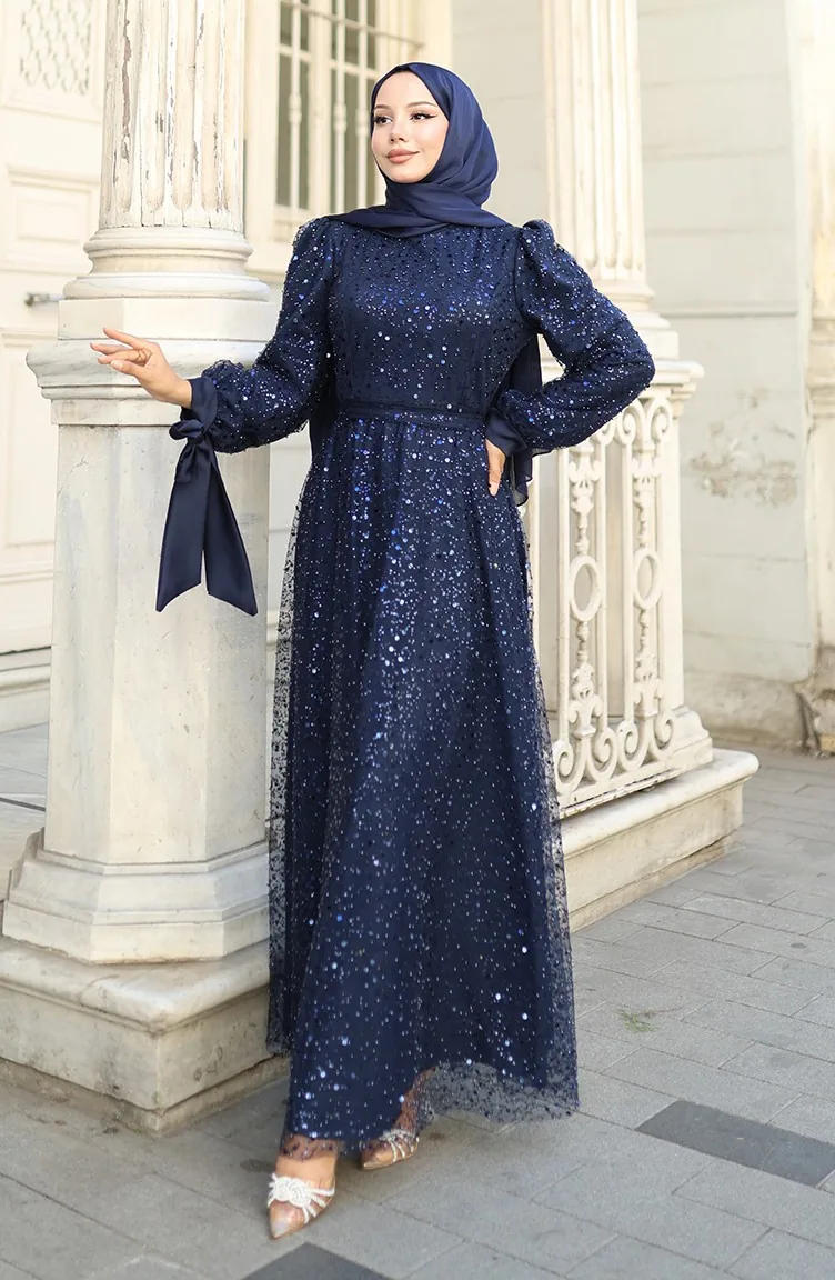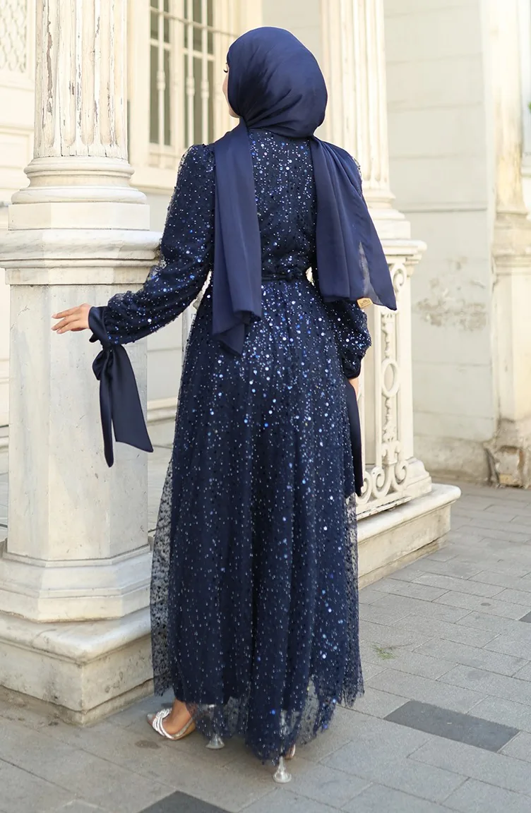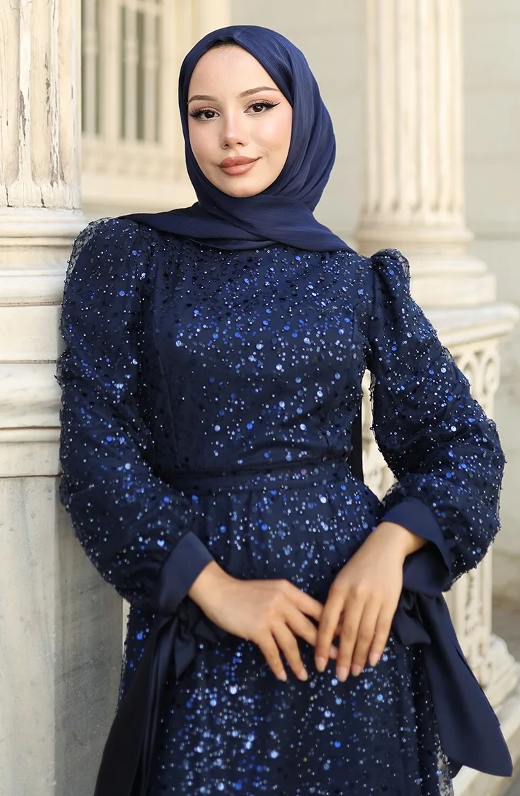 Gekralen Avondjurk 5801-05 Marineblauw 5801-05