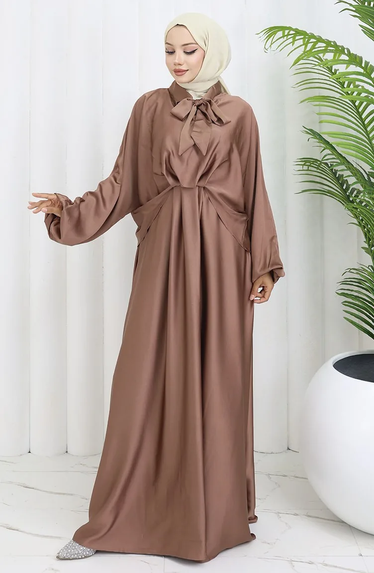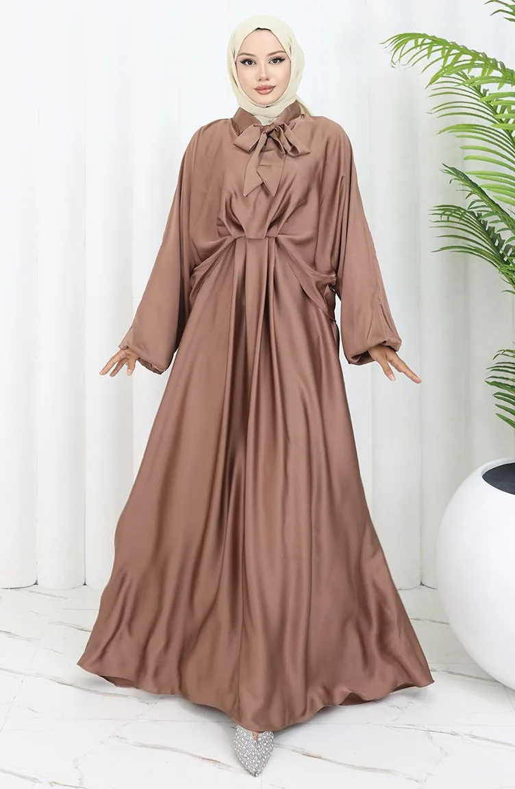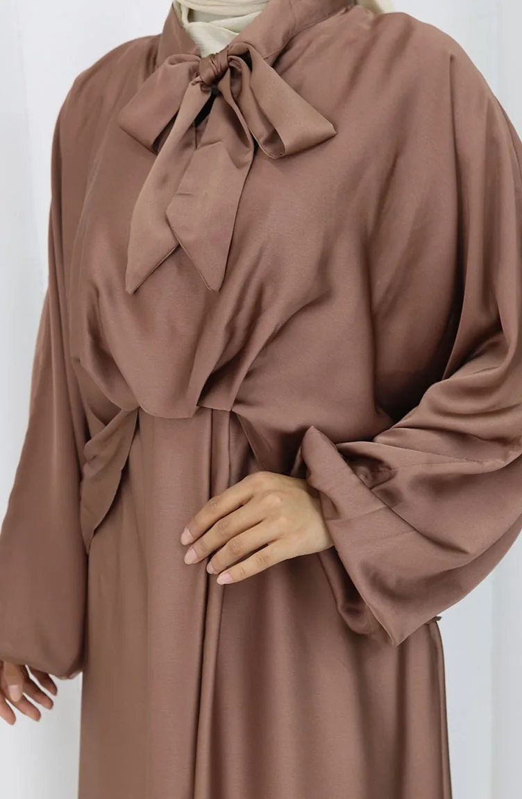 Satijnen Jurk Met Strikkraag 6204-02 Melkkoffie 6204-02