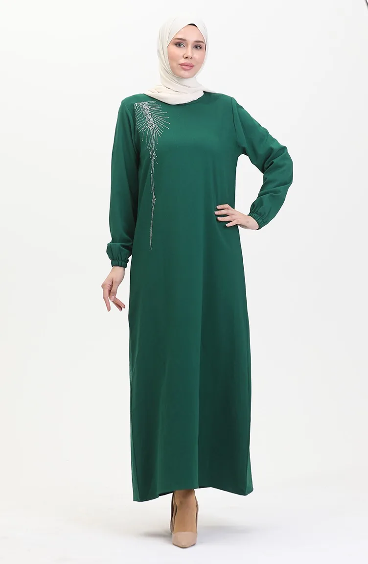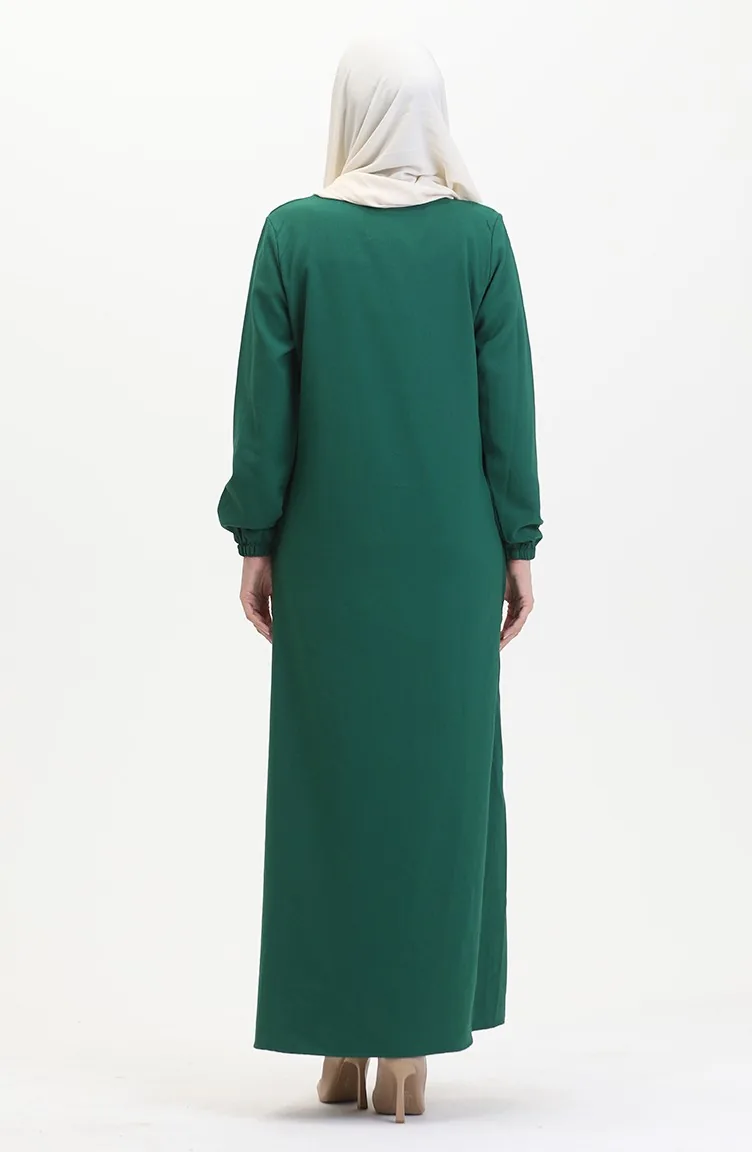 Emerald green color used. It has a plain appearance. The product is used unlined. It's made of elastic sleeves. The Zero collar is preferred for all types of clothing. Suitable for 4 seasons. Plus size option available.