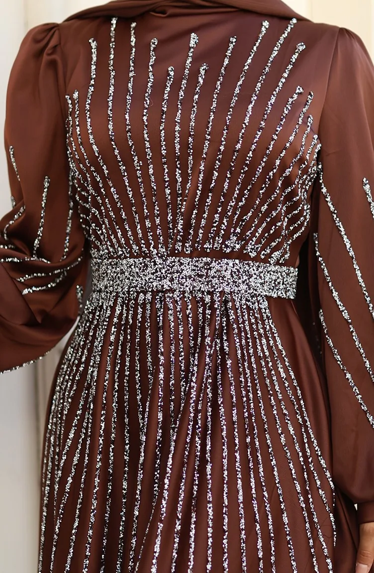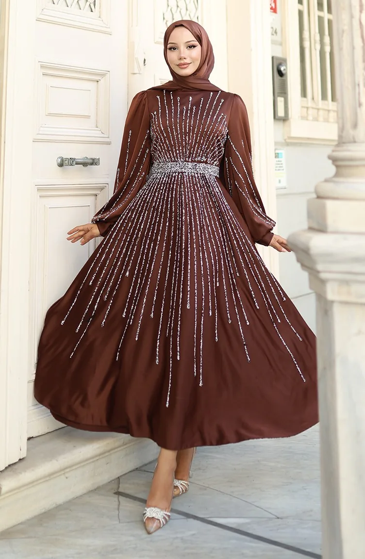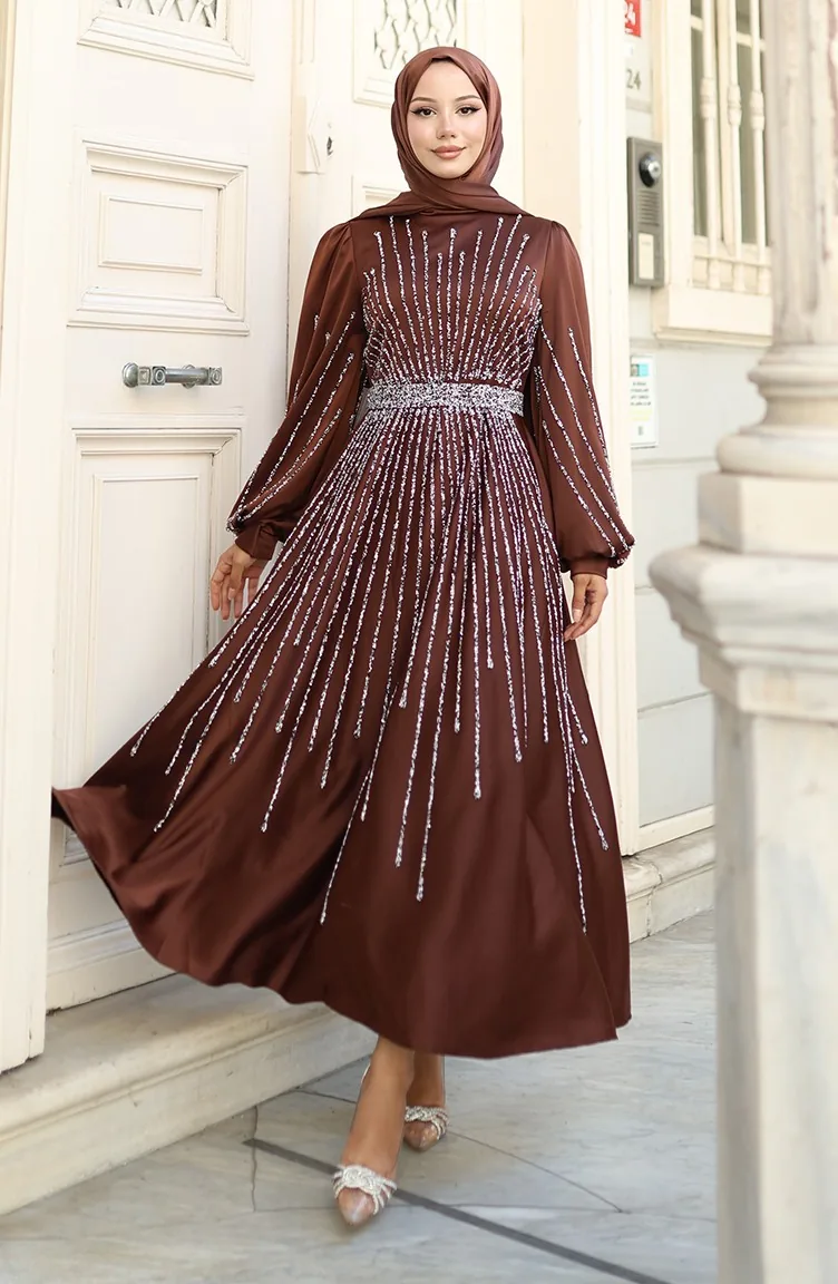 Stoned Satijnen Avondjurk 5802-07 Bruin 5802-07