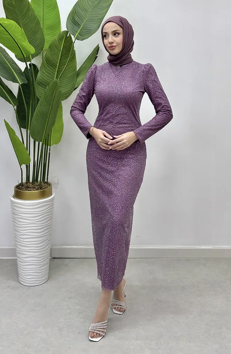 Zilverachtige Tule Avondjurk 5517-05 Dusty Rose 5517-05