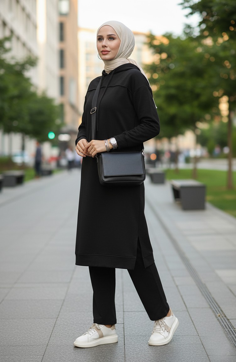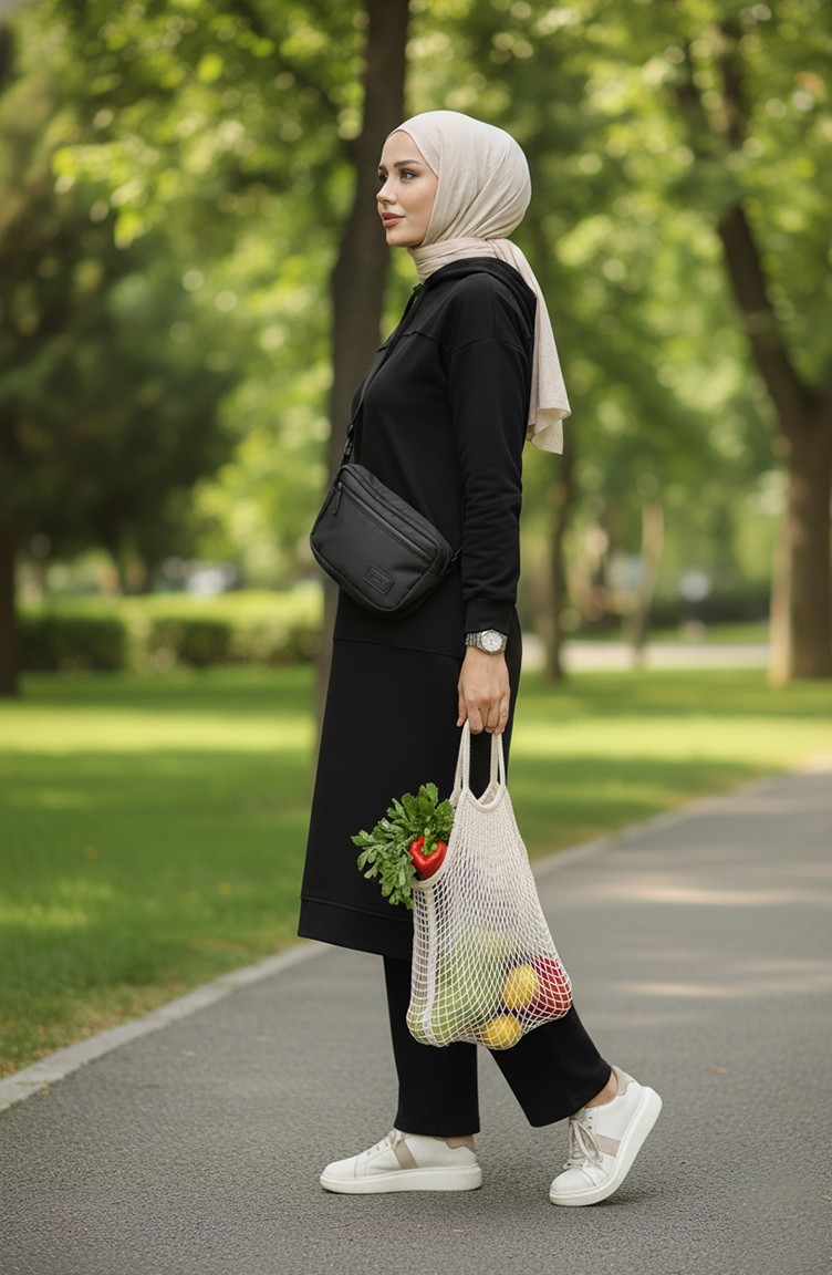 Black color is used. It has a plain appearance. The product is used unlined. Long sleeve product. Suitable for 4 seasons. Plus size option available.
