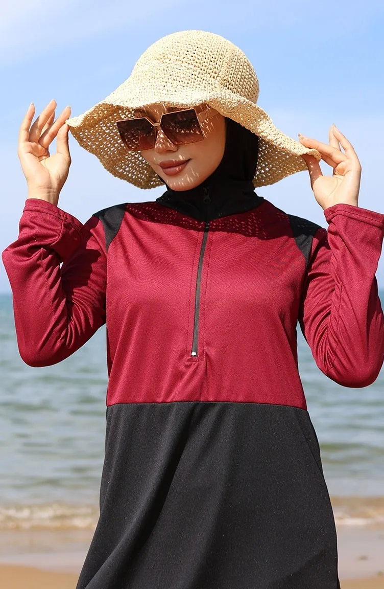 Badpak Met Rits En Hijab 2508-03 Bordeauxrood En Zwart 2508-03