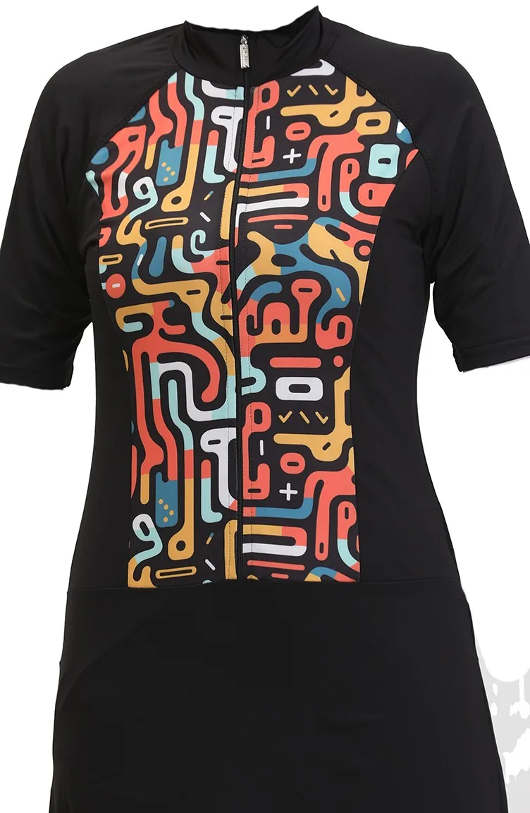 Black color is used. Elastane Fabric. Designed with patterned fabric. Designed for summer use. The size worn by the model, is the one on the image.