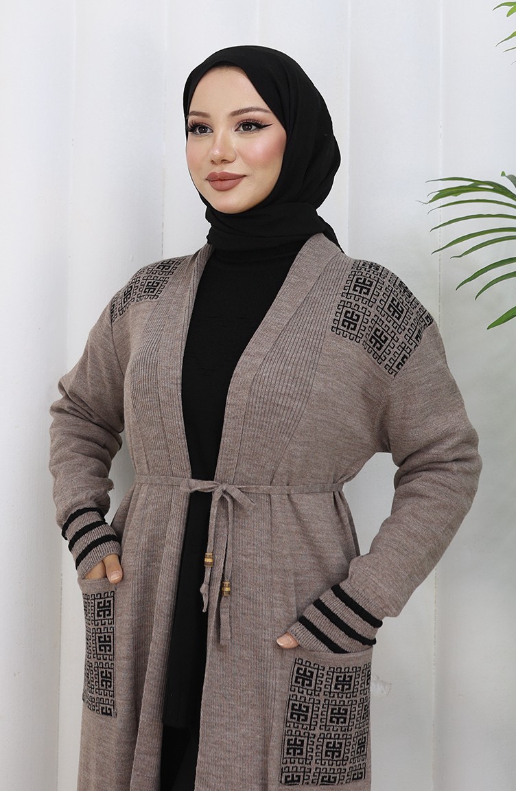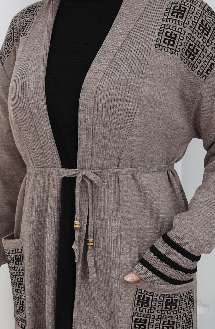Gebreid Geborduurd Lang Vest 0027-03 Mink 0027-03