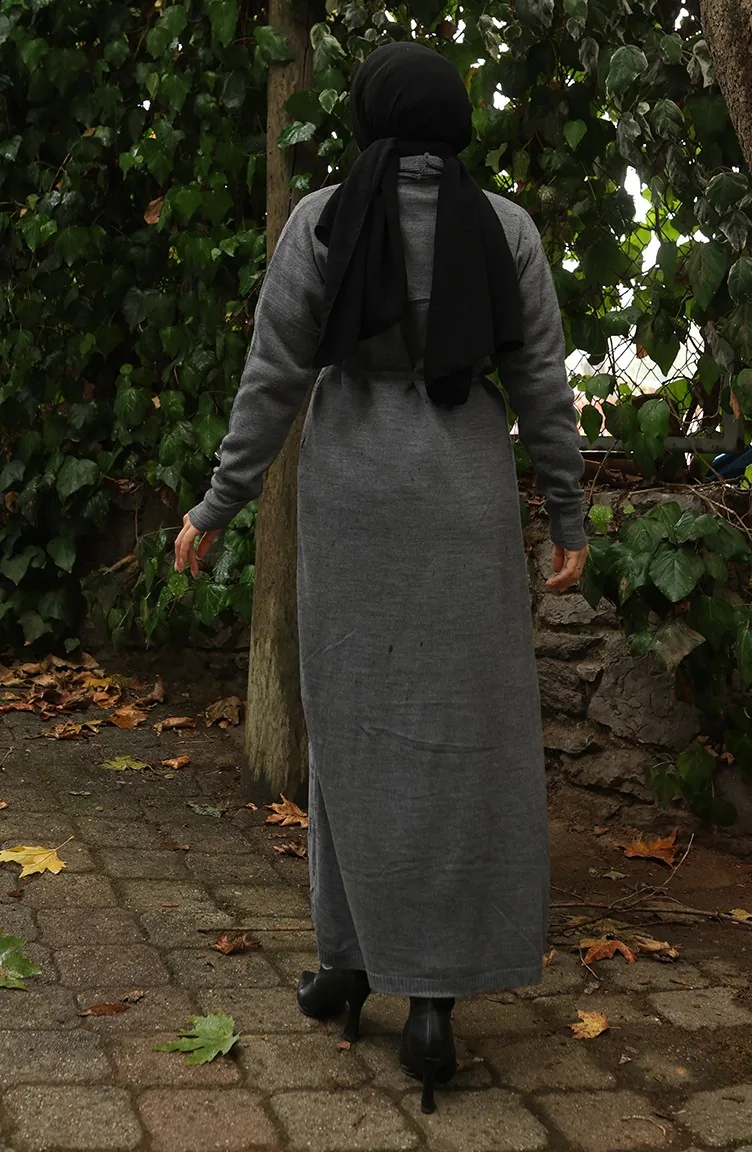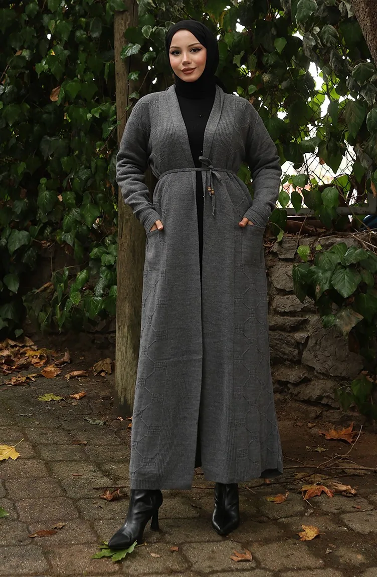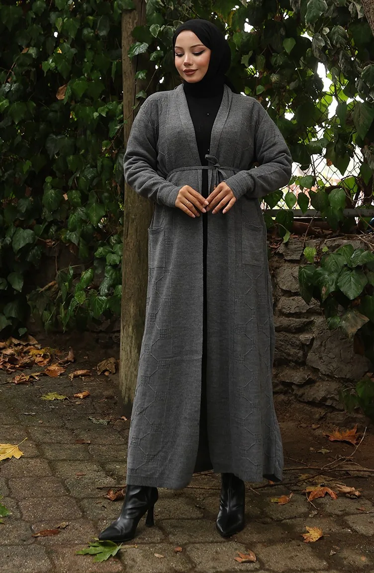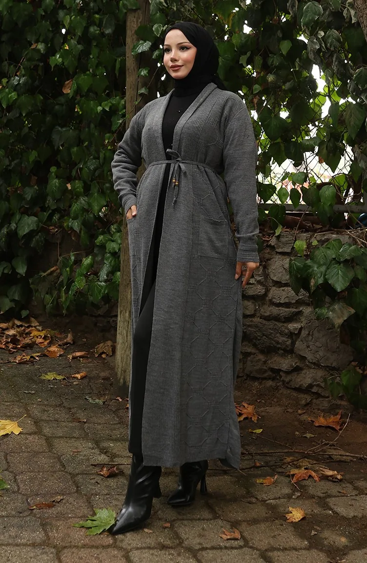 Gebreide Geribbelde Lange Cardigan 0030-04 Antraciet 0030-04
