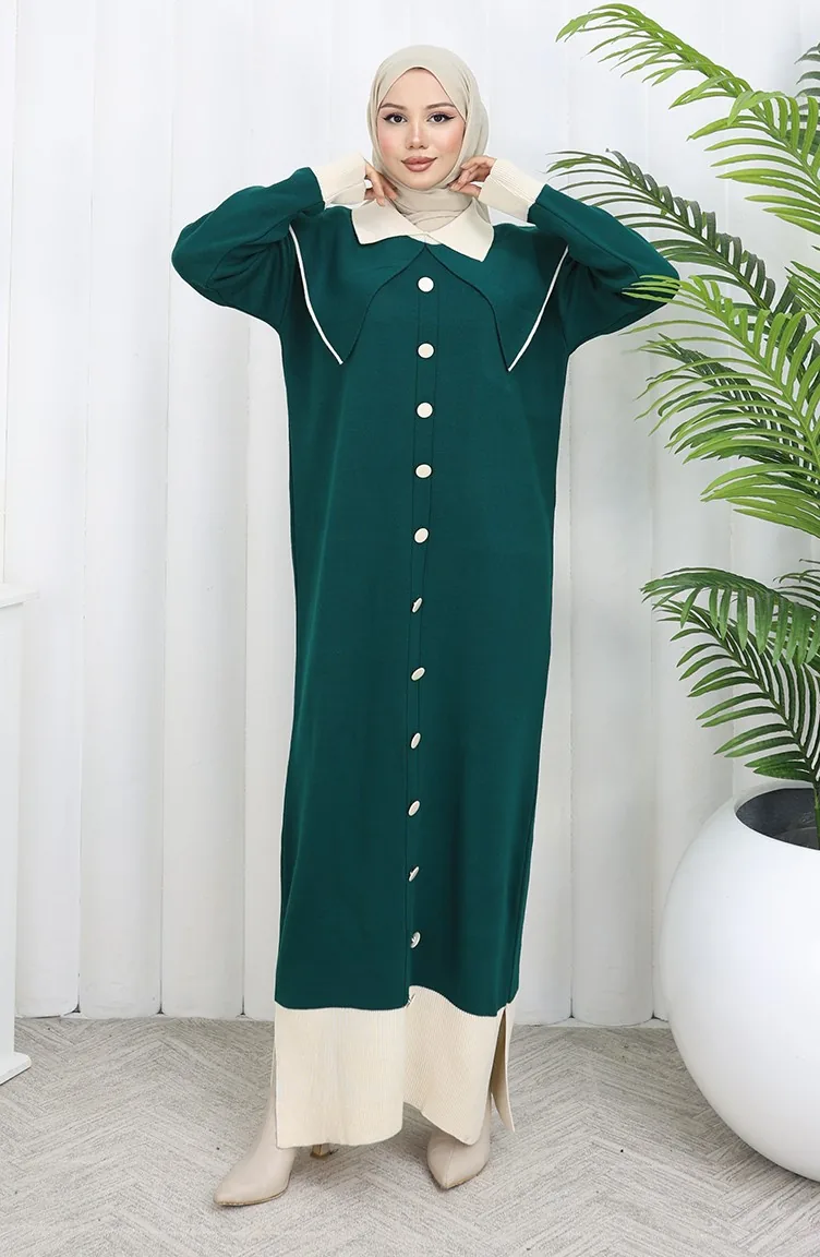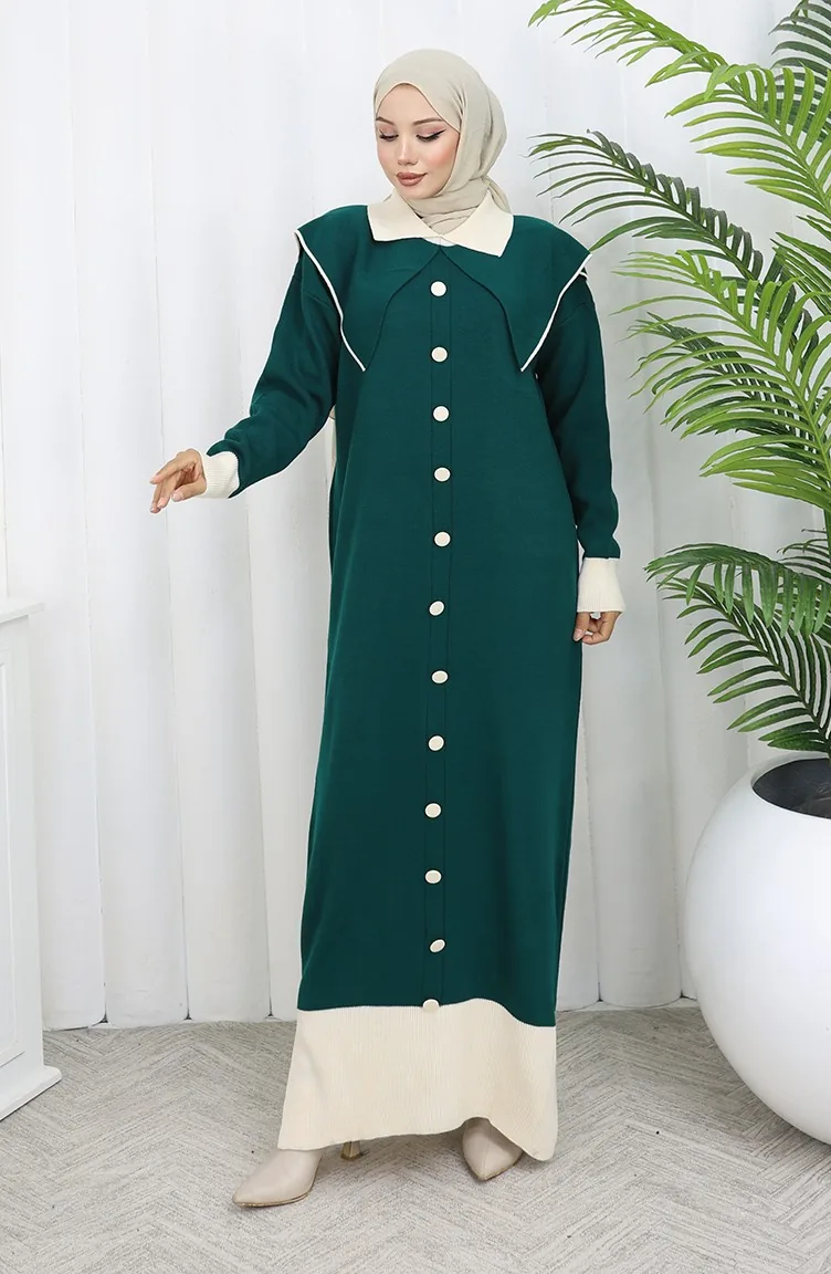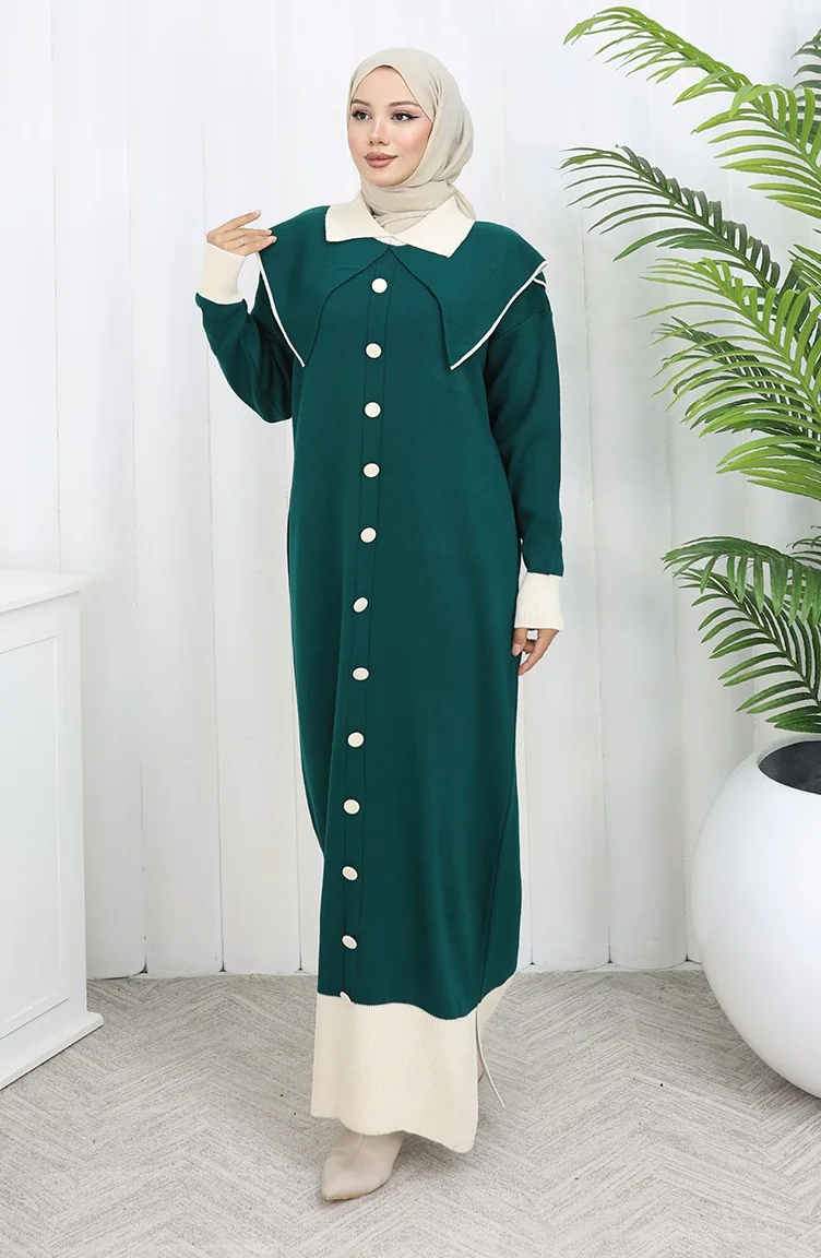 Gebreide Jurk Met Knoopjeskraag En Details 0513-03 Petrol 0513-03