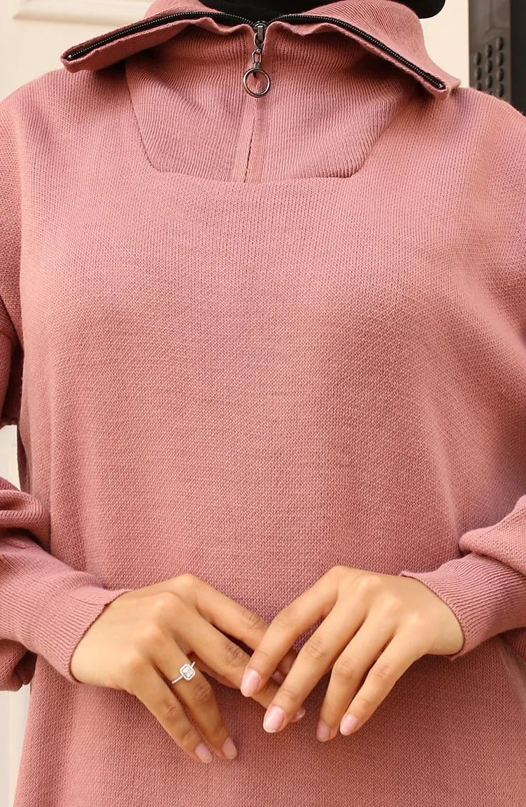 Gebreide Jurk Met Ritskraag 2441-03 Dusty Rose 2441-03