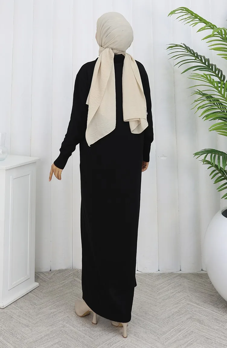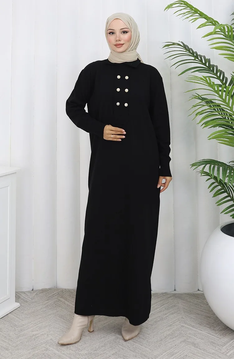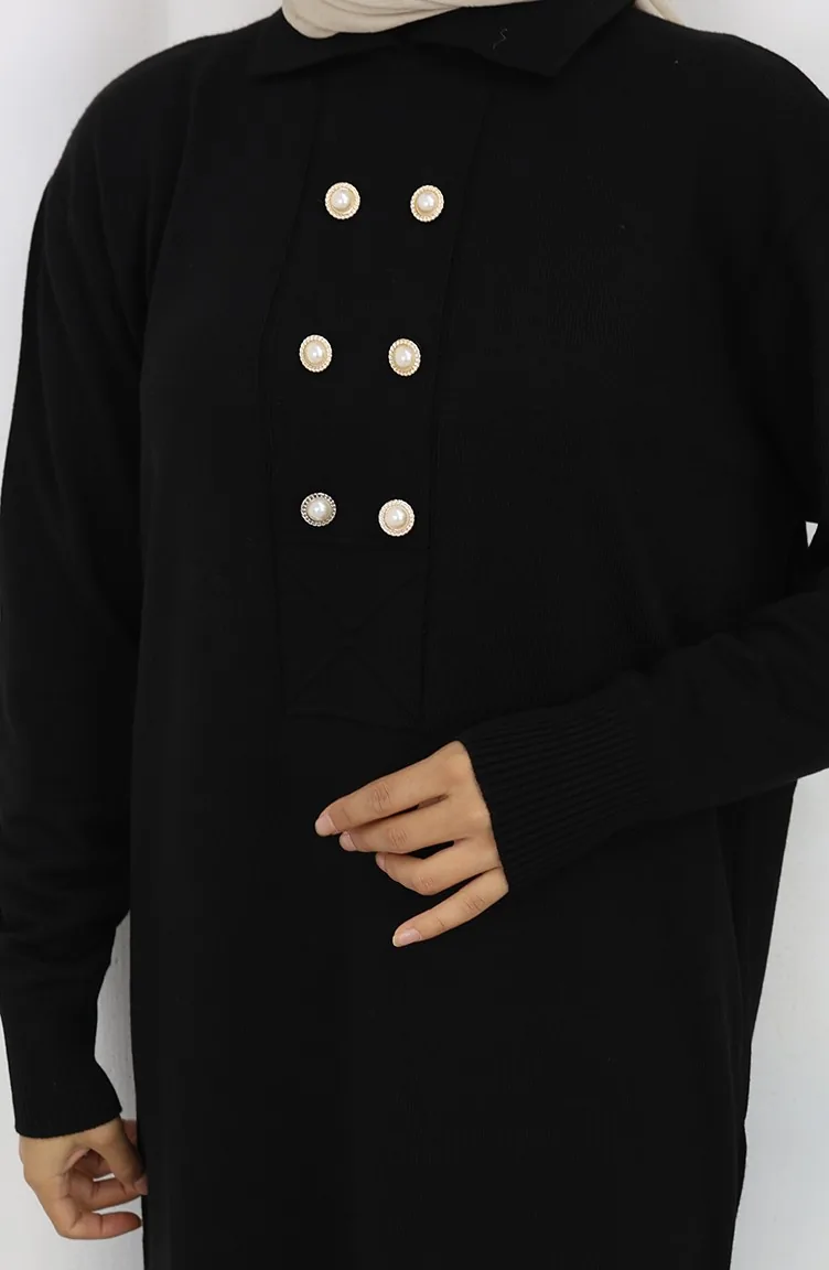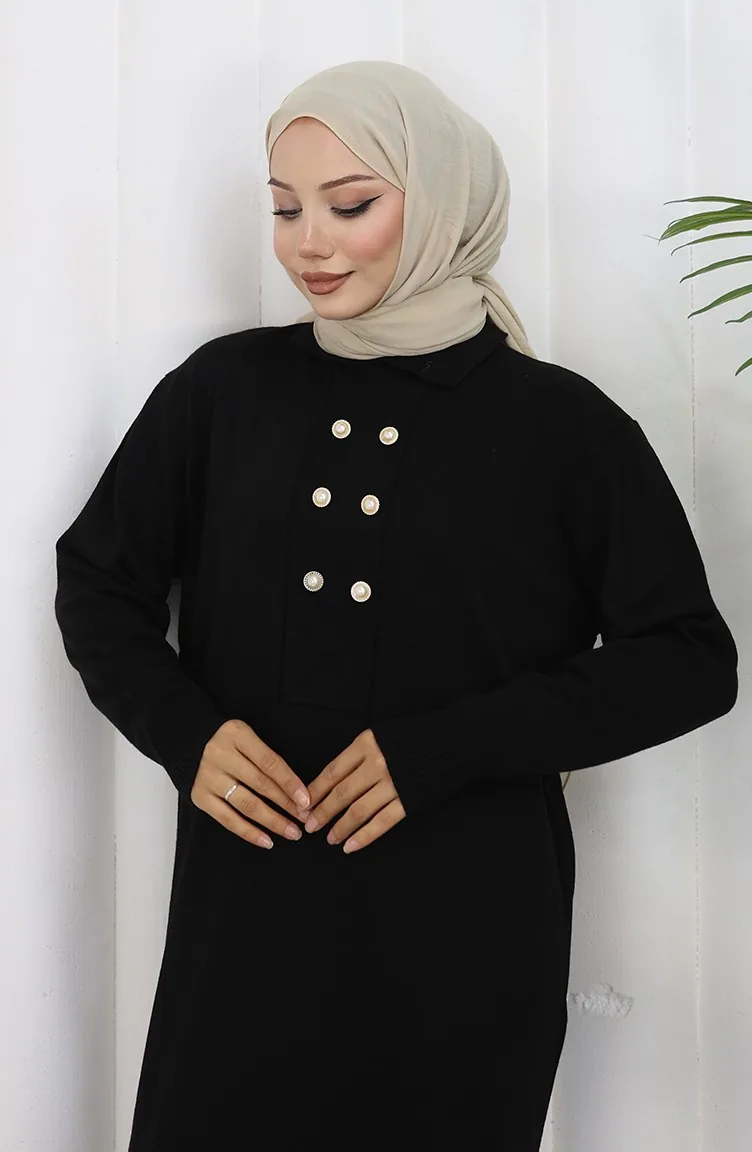 Gebreide Polokraag Met Knoopdetailjurk 0007-06 Zwart 0007-06