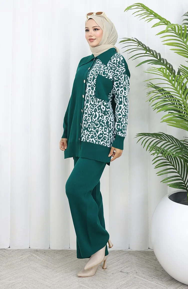 Breiwerk Garnish Geknoopte Tuniek Broek Tweedelig Pak 1078-01 Petrol 1078-01