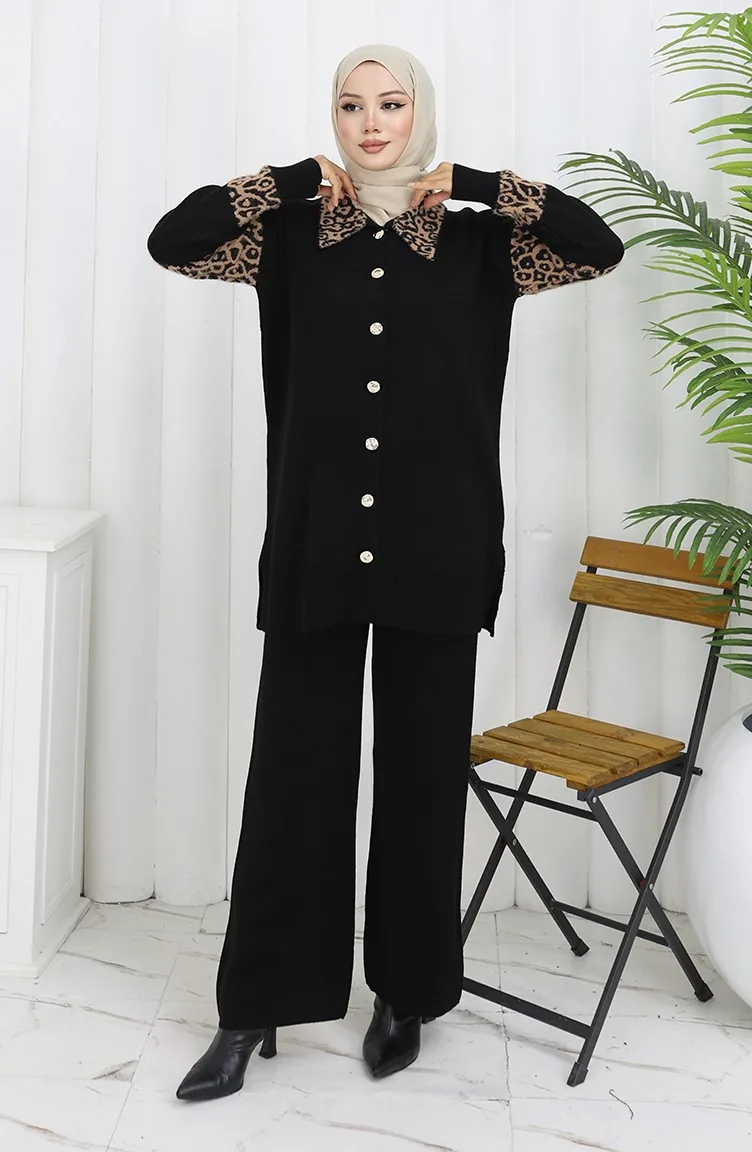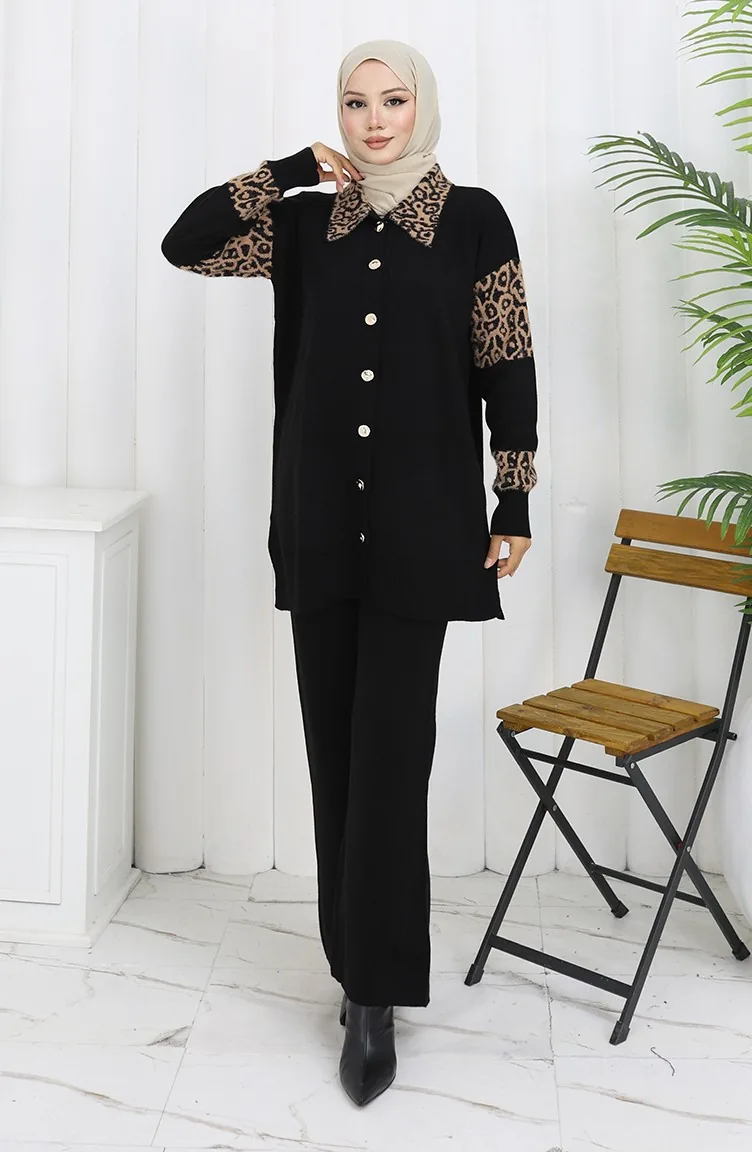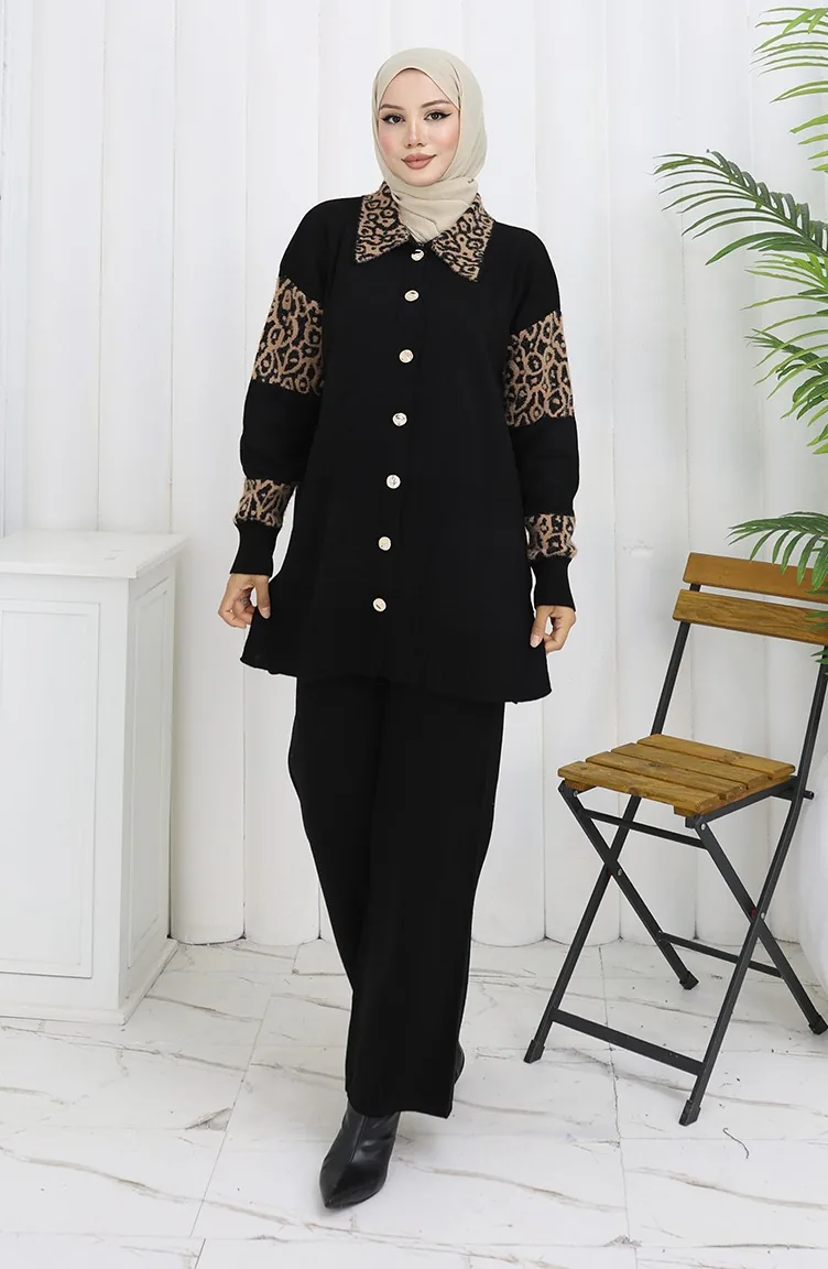 Gebreid Geknoopt Tuniek Met Garnering Tweedelig Pak 1020-06 Melkkoffie 1020-06