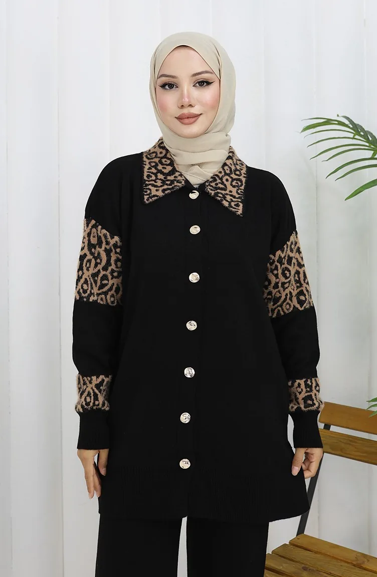 Designed by Acrylic fabric. It has a plain appearance. Buttons have been used to make it easy to use. Designed from thick fabric. The size worn by the model, is the one on the image.
