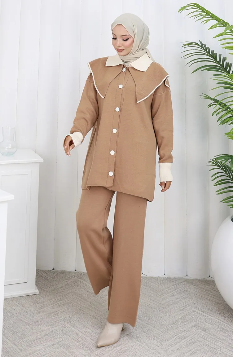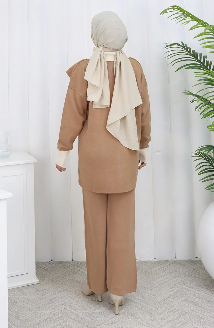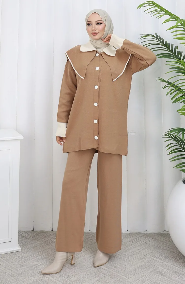 Gebreid Geknoopt Tuniek Met Garnering Tweedelig Pak 1122-04 Melkkoffie 1122-04