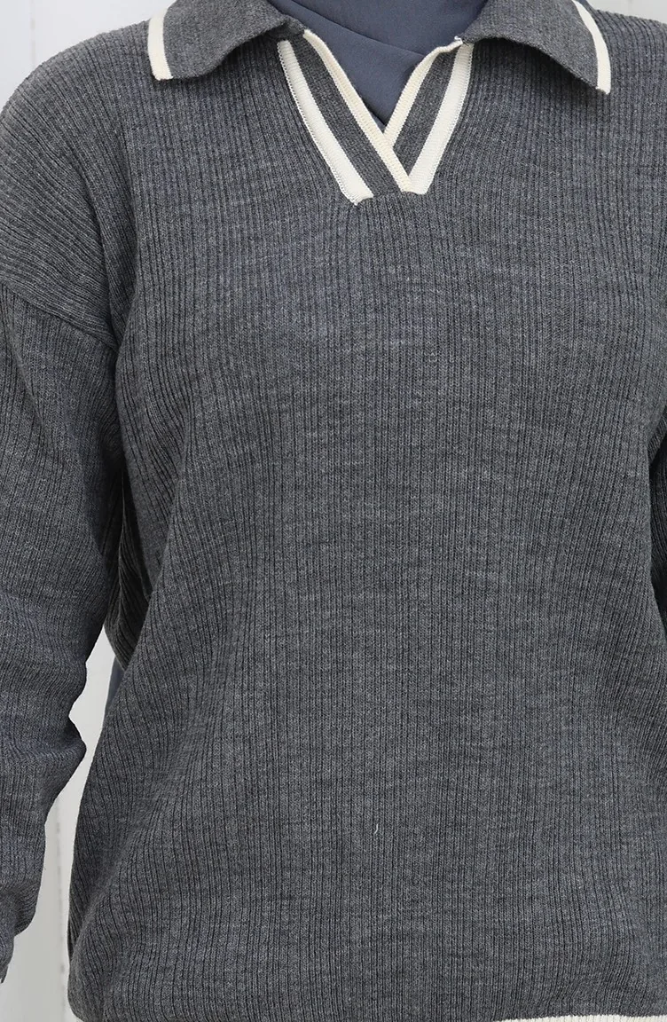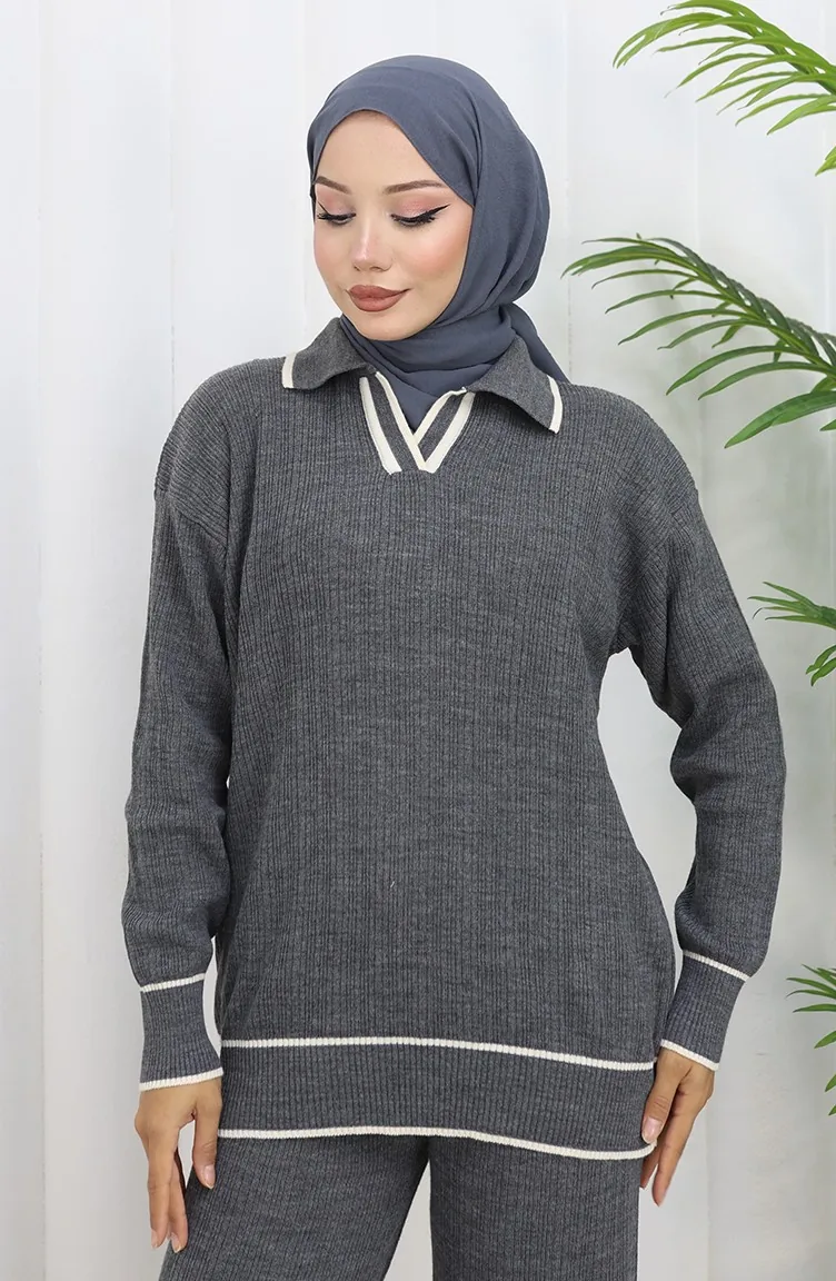 Gebreide Geribbelde Trui-broek Tweedelig Set 0010-01 Antraciet 0010-01