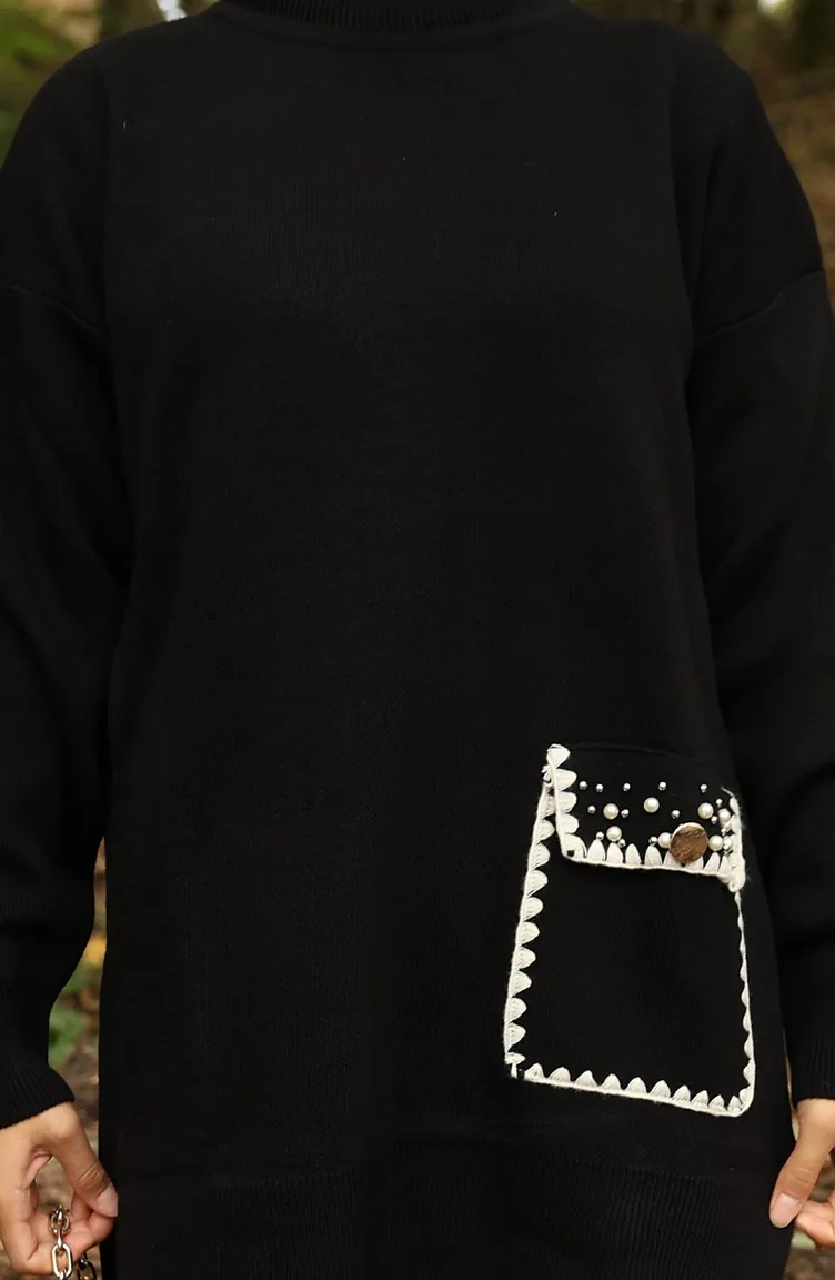 Black color is used. Knitwear is an indispensable type of fabric for the winter months. It has a plain appearance. When the tunic combined with another product, you will get a nice suit. Designed from thick fabric. The size worn by the model, is the one on the image.