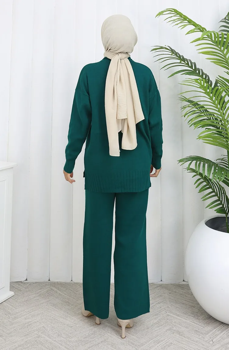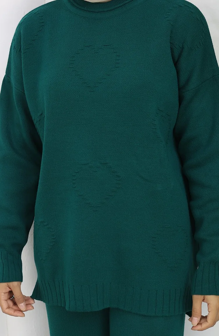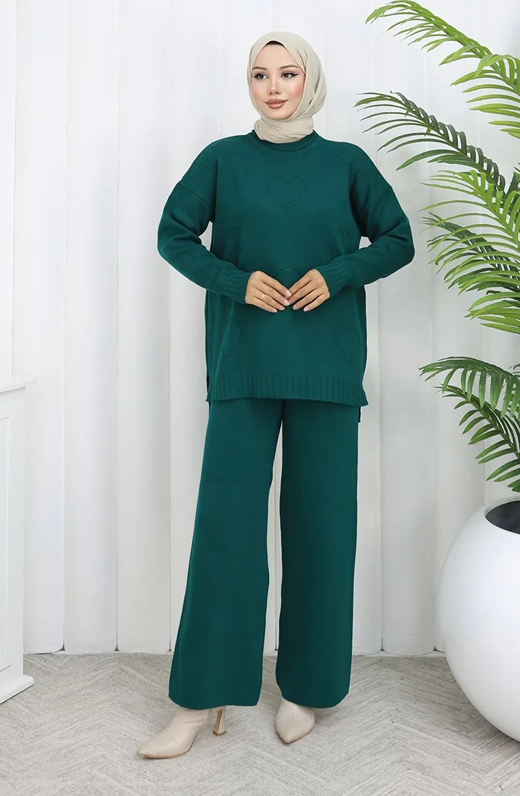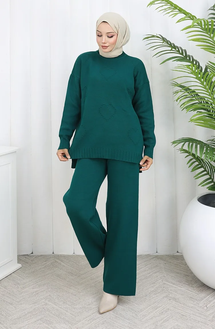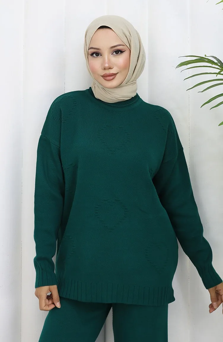 Gebreide Trui Met Hartpatroon Tweedelig Setje 0016-02 Petrol 0016-02