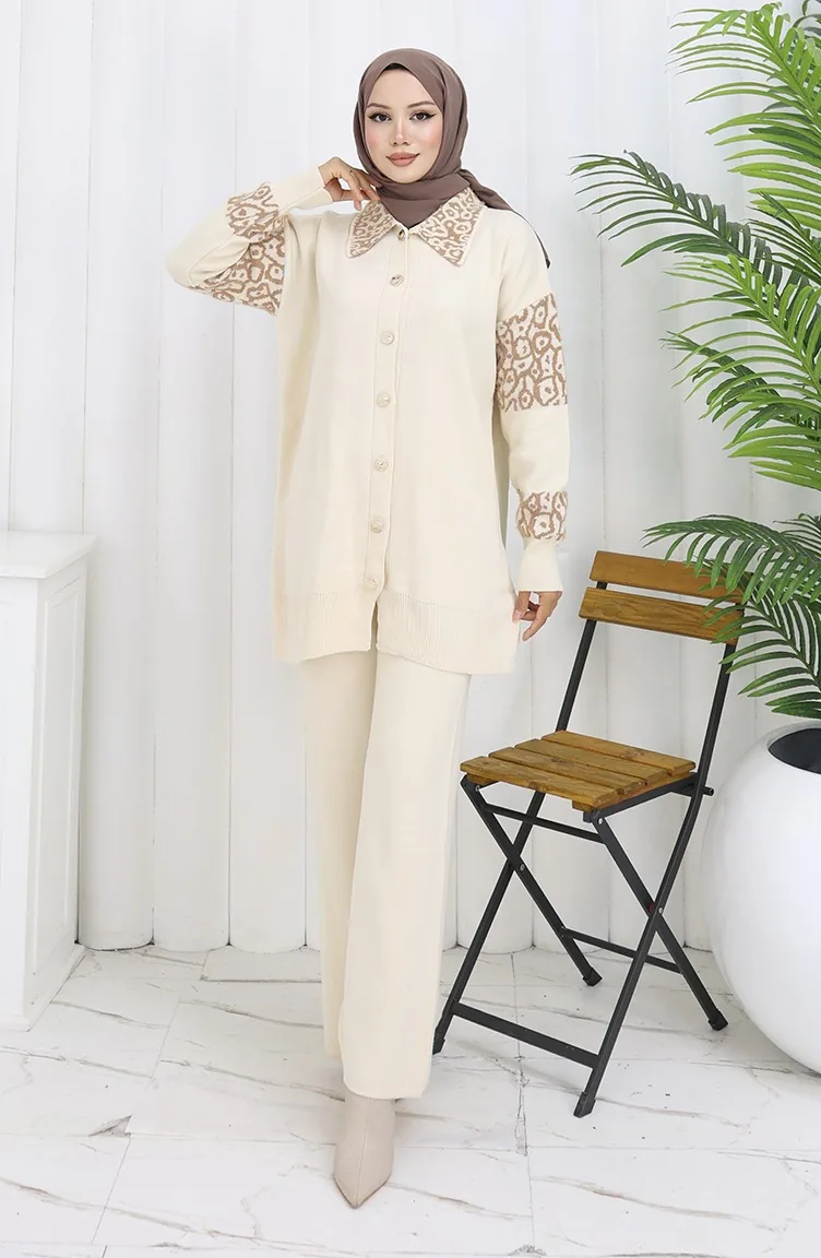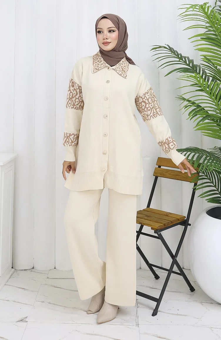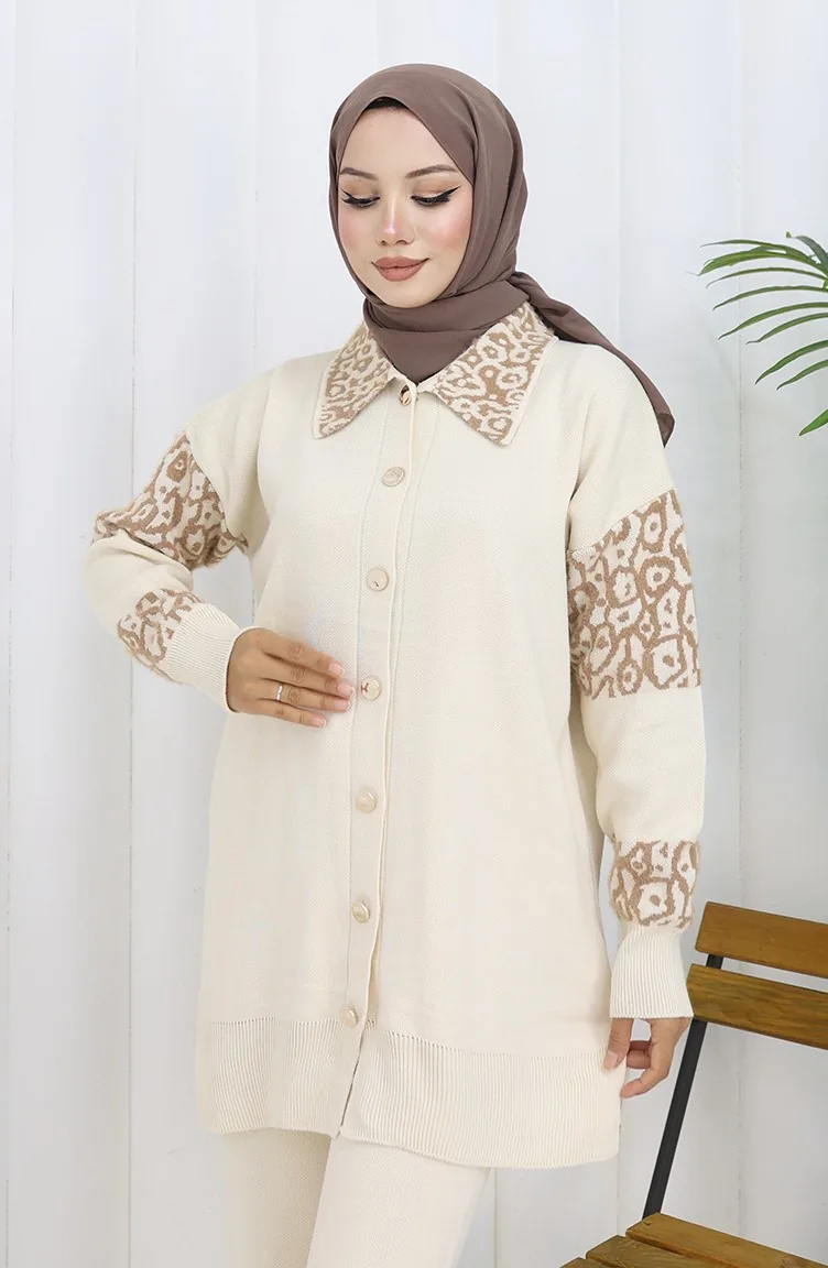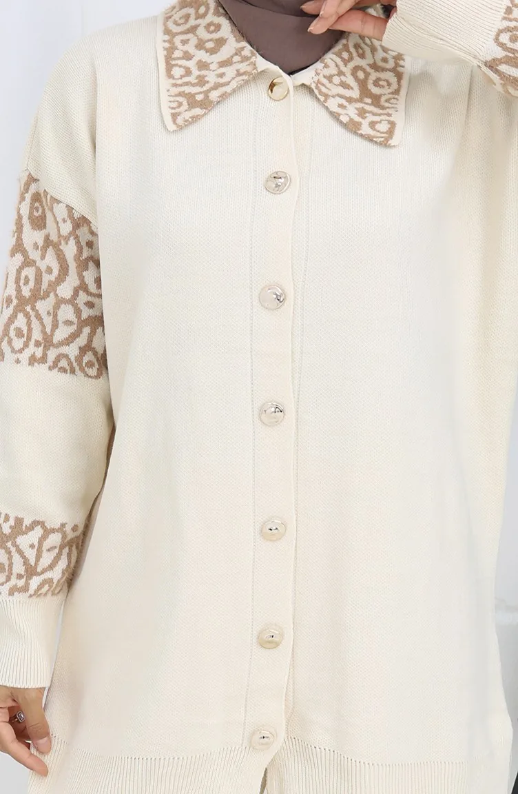 Gebreide Tuniek Met Knopen En Garnering Tweedelig Pak 1020-07 Beige 1020-07