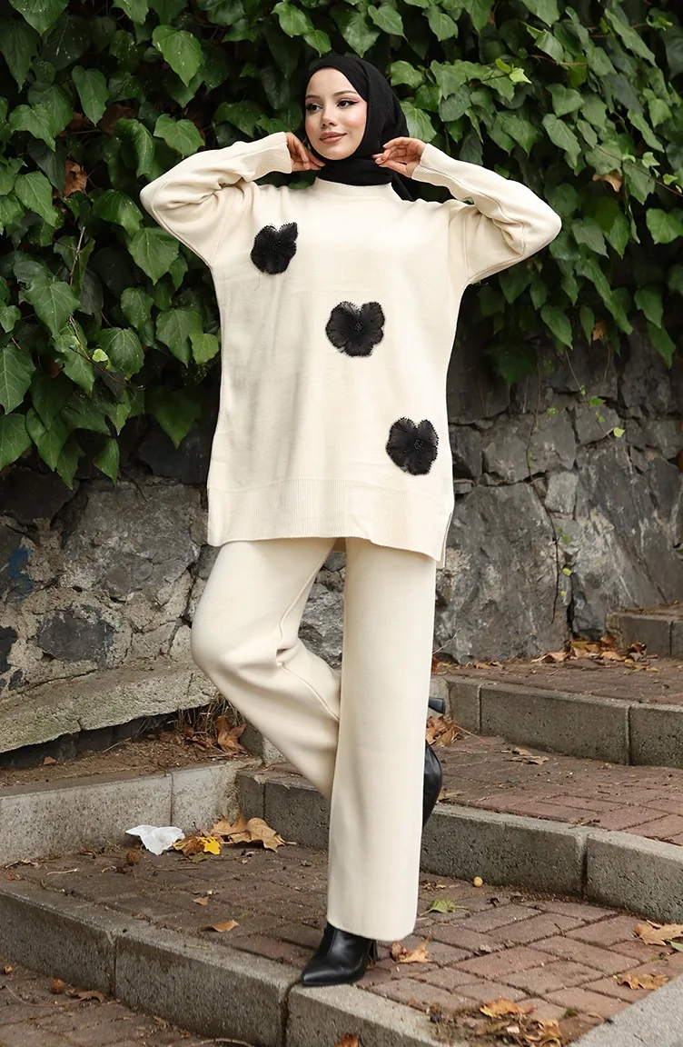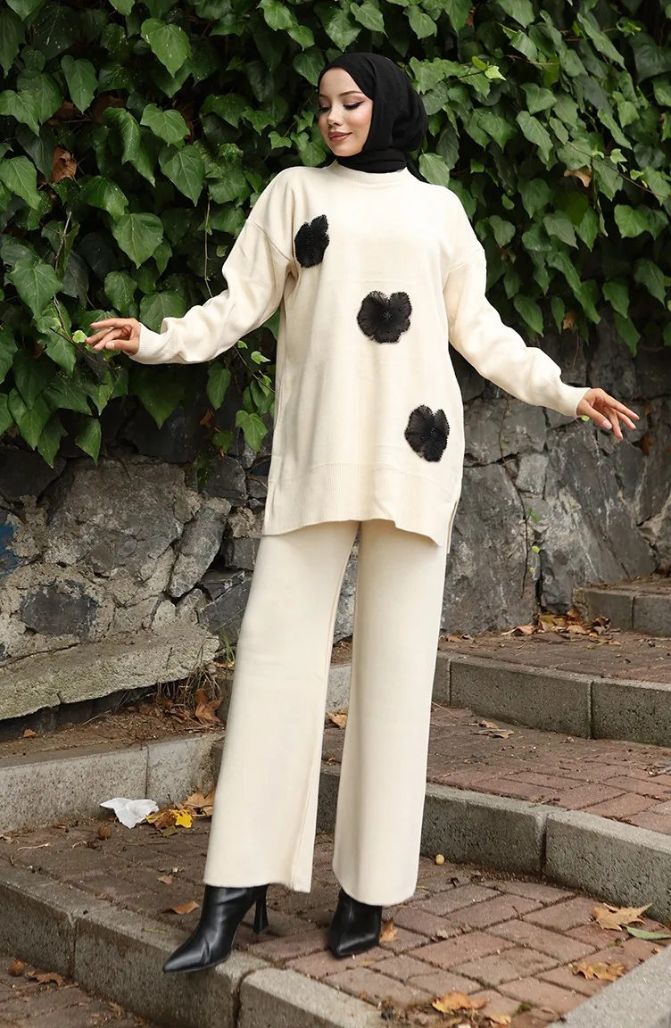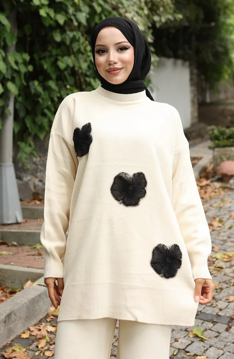 Gebreide Tuniek Met Kralenborduursel Tweedelig Setje 1016-08 Beige 1016-08