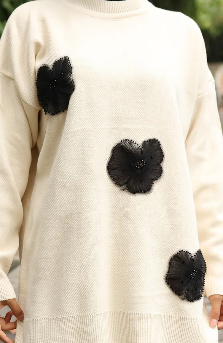 Knitwear is an indispensable type of fabric for the winter months. It has a plain appearance. When the tunic combined with another product, you will get a nice suit. Designed from thick fabric. The size worn by the model, is the one on the image.
