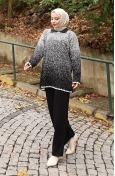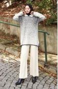 Emerald green color used. Designed by Acrylic fabric. It has a plain appearance. When the tunic combined with another product, you will get a nice suit. Designed from thick fabric. The size worn by the model, is the one on the image.