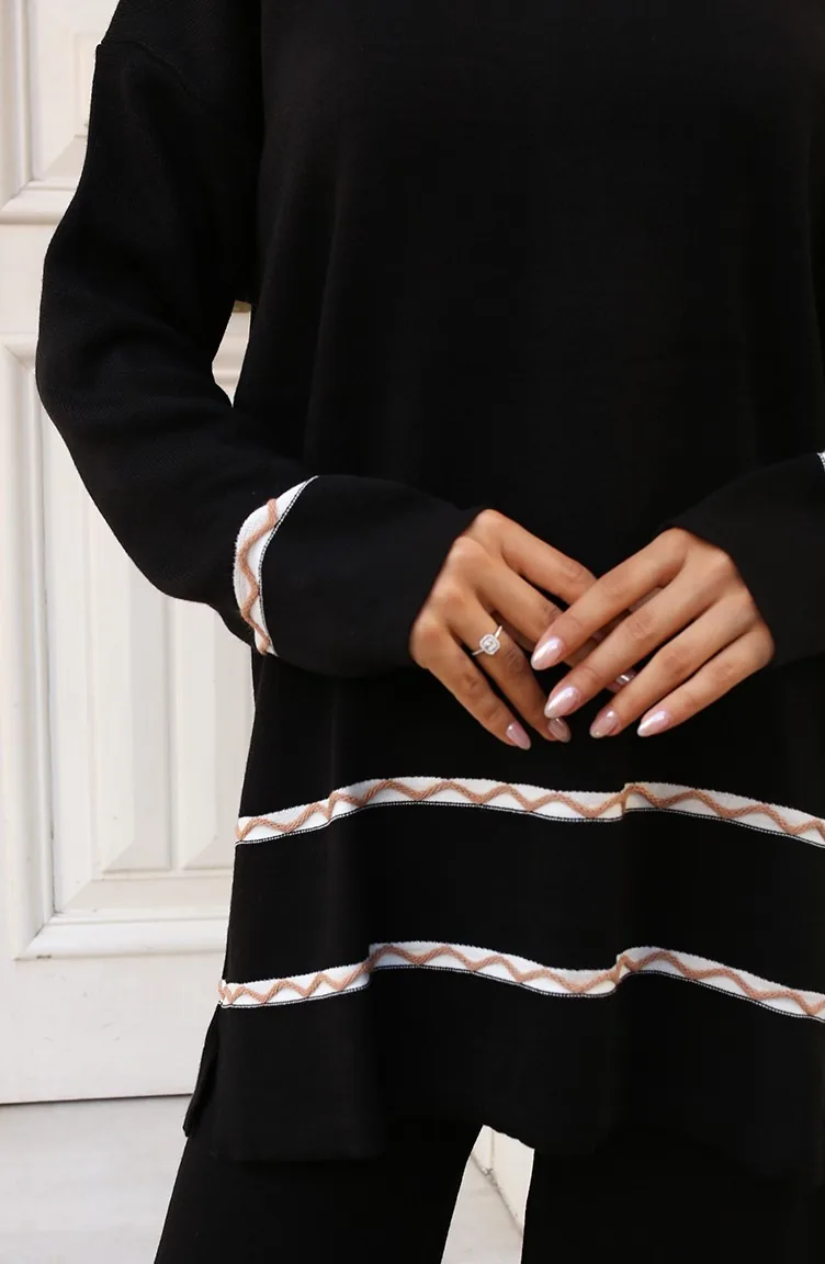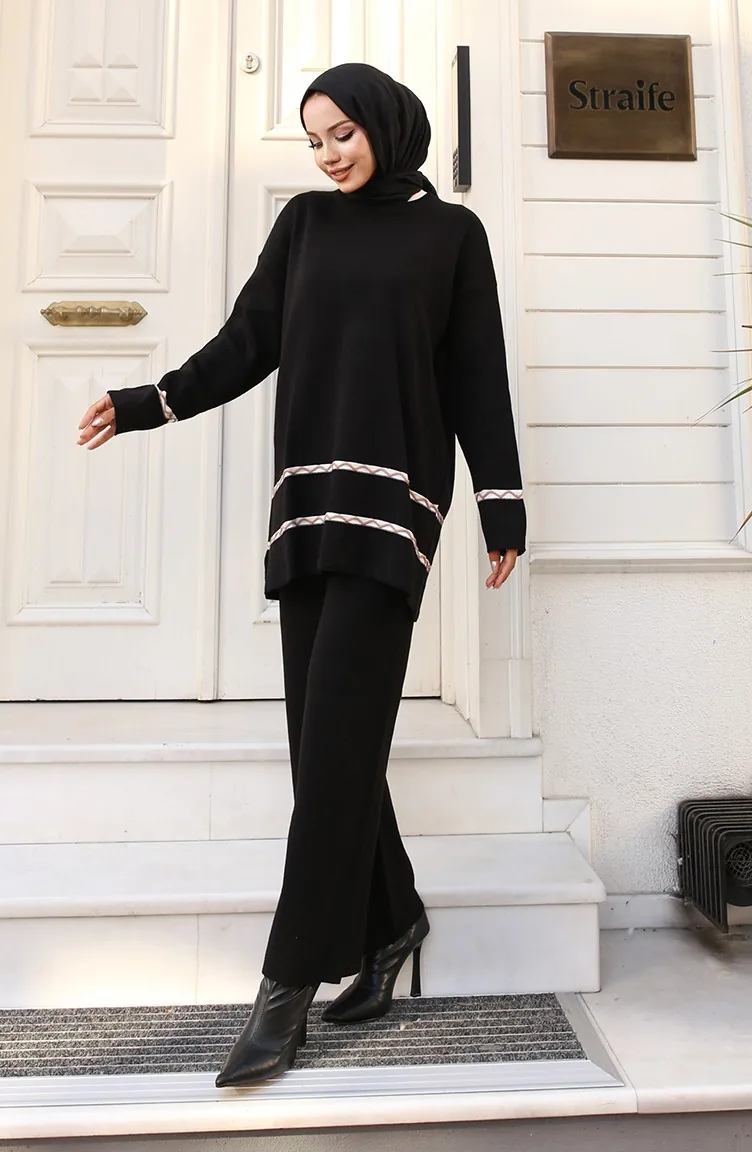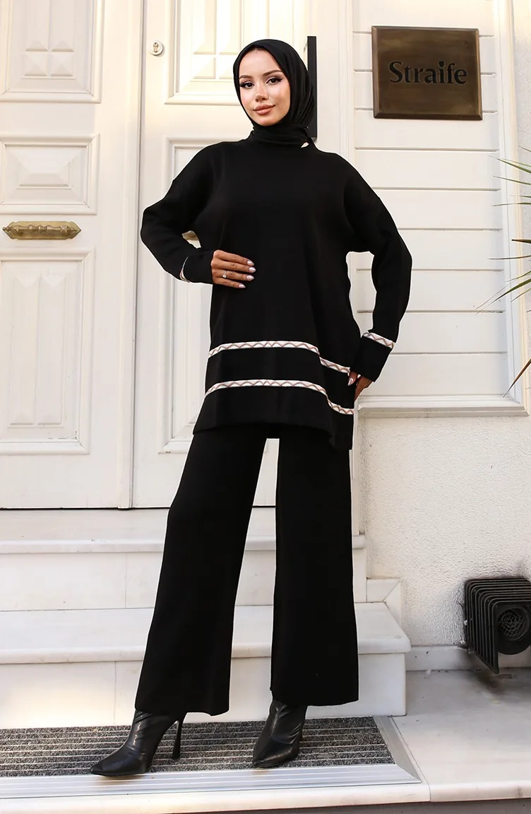 Gedetailleerd Gebreide Pak 24029-03 Zwart 24029-03