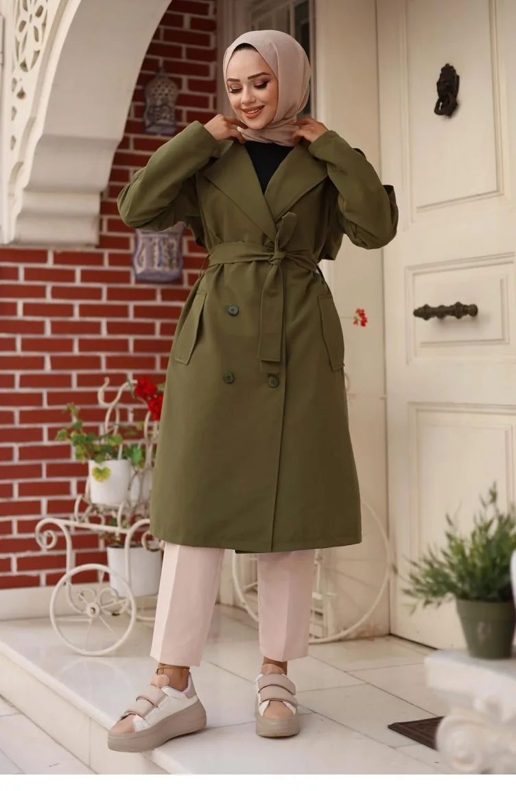 Epaulette Gedetailleerde Trenchcoat Kaki 4432 539